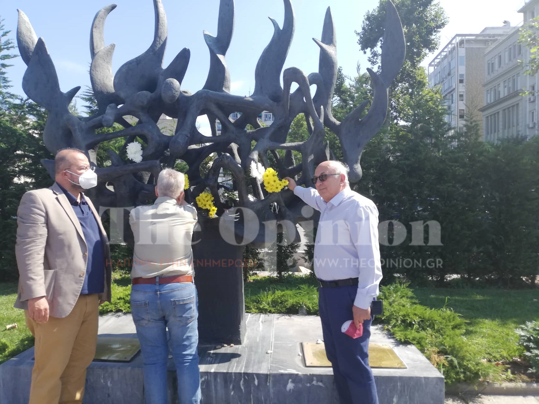 Βουλευτές του ΣΥΡΙΖΑ Προοδευτική Συμμαχία Θεσσαλονίκης τίμησαν με λουλούδια στο μνημείο της πλατείας Ελευθερίας τους Εβραίους της πόλης.