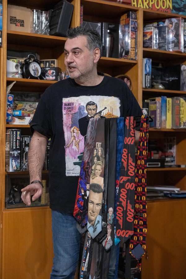 Ο Τζέιμς Μποντ σε πολλές παραλλαγές: το καμάκι υποβρύχιου ψαρέματος από το Thunderball, η θρυλική Aston Martin- το αυτοκίνητο του υπερκατάσκοπου που είναι εφοδιασμένο με πολλά gadgets- το ελικόπτερο «Little Nellie» που εμφανίστηκε στην ταινία You Only Live Twice και αρκετοί κακοί όπως ο Σαγονιάς, όλα βρίσκονται στο Ρεντζίκι Θεσσαλονίκης. Για την ακρίβεια, αποτελούν κομμάτια της συλλογής ενός φανατικού συλλέκτη παιχνιδιών και επιτραπέζιων του Τζέιμς Μποντ, που διαθέτει αντικείμενα από το 1965 μέχρι σήμερα. Φτιάχνει, επίσης, ρέπλικες που έχουν φτάσει μέχρι και στην άλλη άκρη της γης, στα χέρια διάσημων συλλεκτών, ενώ στόχος και όνειρό του είναι να πραγματοποιήσει την πρώτη έκθεση Τζέιμς Μποντ στη Θεσσαλονίκη.