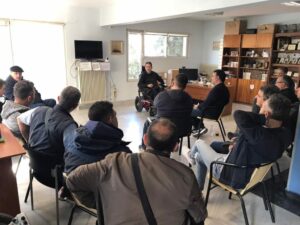Σε ενημερωτική συνάντηση – εκπαίδευση εργαζομένων του ΟΑΣΘ, που έγινε στα γραφεία του Πανελληνίου Συλλόγου Παραπληγικών – Παράρτημα Μακεδονίας – Θράκης, στελέχη του οργανισμού «μυήθηκαν» σε ζητήματα αρχών καλής πρακτικής για την ποιοτική εξυπηρέτηση ατόμων με κινητικά προβλήματα.