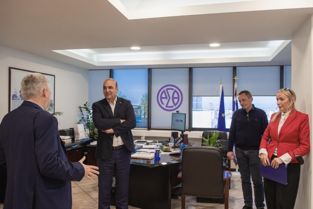 Στα γραφεία του Οργανισμού πραγματοποιήθηκε η υπογραφή της σύμβασης για την προμήθεια ηλεκτρονικών διατακτικών σίτισης για το προσωπικό του ΟΑΣΘ με τον Γιάννη Μασούτη της «Διαμαντής Μασούτης Α.Ε.» που κέρδισε τον διαγωνισμό.