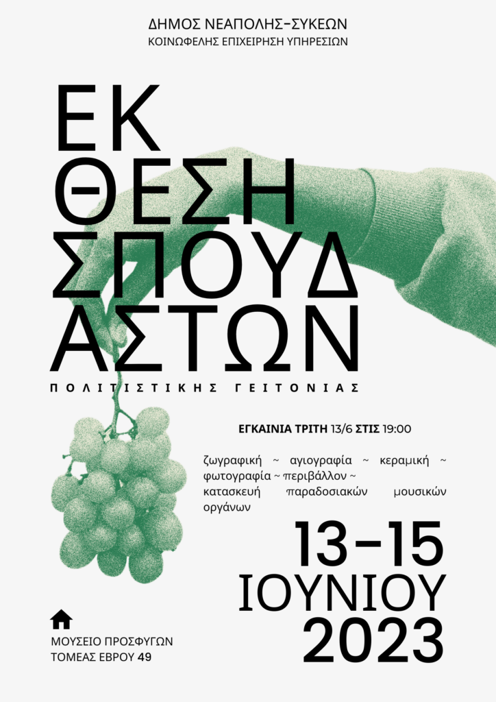 Τα εγκαίνια του τριημέρου θα γίνουν στις 7 το απόγευμα της Τρίτης ενώ την έκθεση, που γίνεται, όπως κάθε χρόνο, με την ολοκλήρωση του κύκλου των εργαστηρίων, διοργανώνει ο δήμος Νεάπολης-Συκεών σε συνεργασία με την ΚΕΥΝΣ.