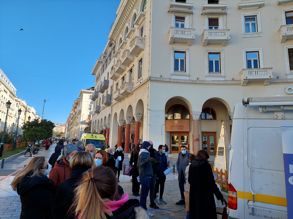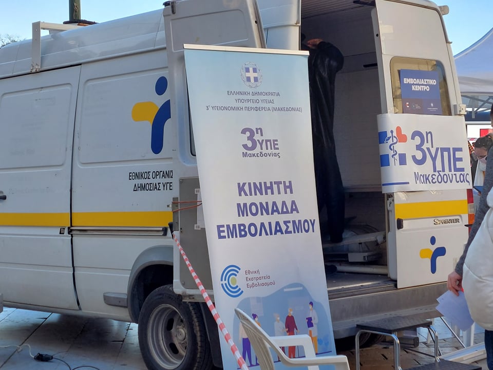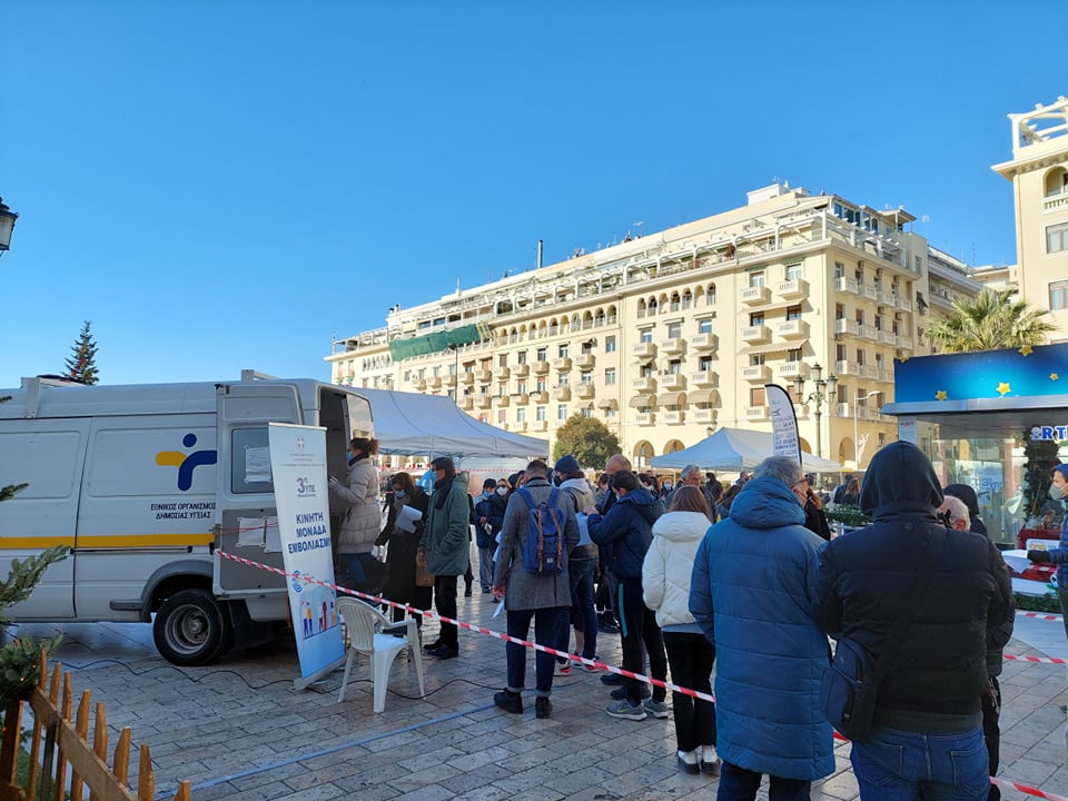 Μεγάλη απήχηση έχει για ακόμα μια φορά η κινητή μονάδα εμβολιασμού, με τους Θεσσαλονικείς να σχηματίζουν ουρές στην Πλατεία Αριστοτέλους.