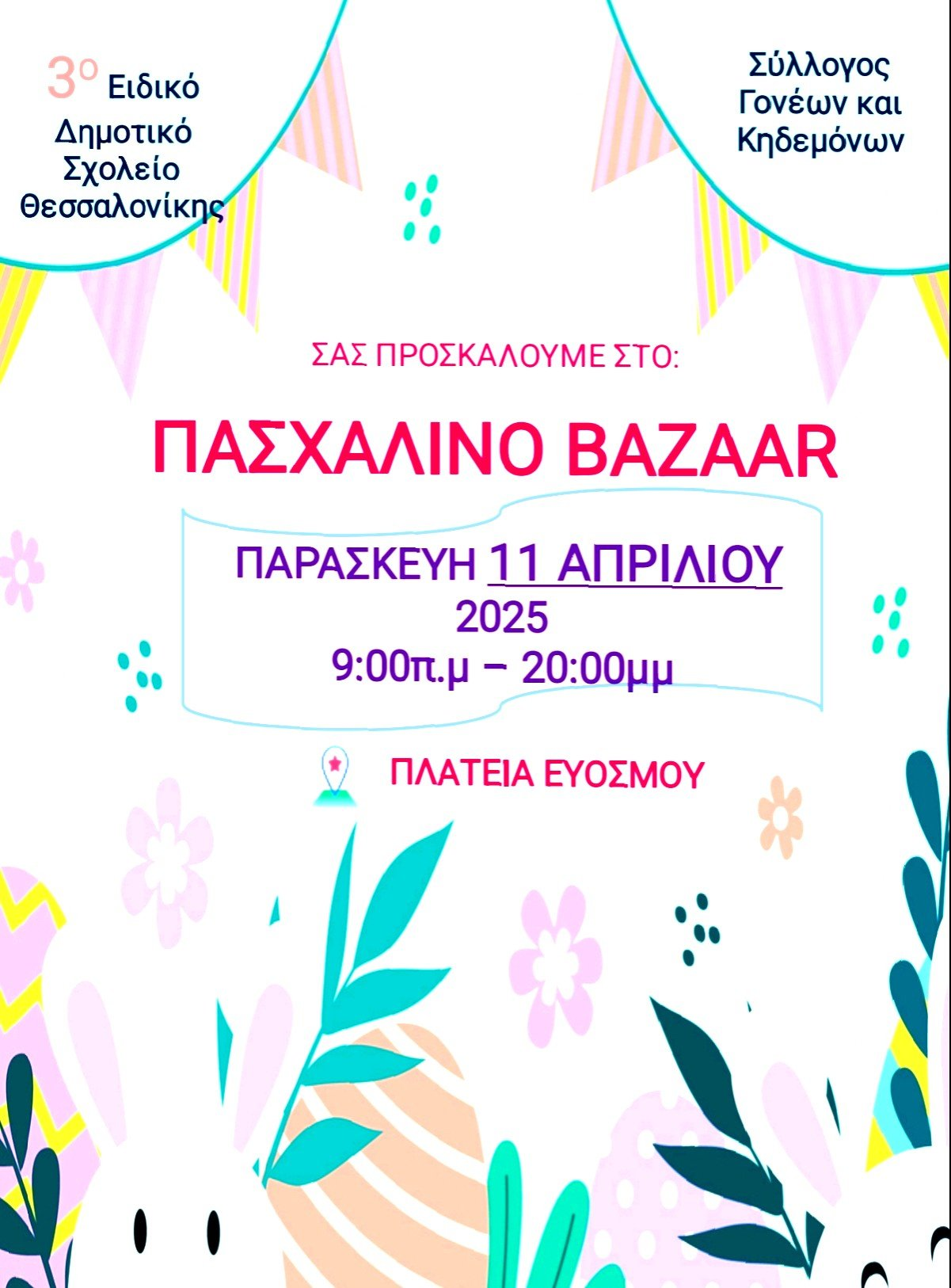 Πασχαλινό μπαζάαρ πραγματοποιείται σήμερα στην πλατεία του Ευόσμου, για την ενίσχυση του συλλόγου γονέων του 3ου ειδικού δημοτικού σχολείου.