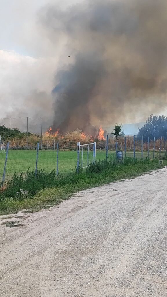 Μεγάλη πυρκαγιά ξέσπασε το μεσημέρι σε χορτολιβαδική έκταση στην Κατερίνη, σε σημείο ανάμεσα από το γήπεδο της Ανδρομάχης και τον Περιφερειακό Δρόμο.