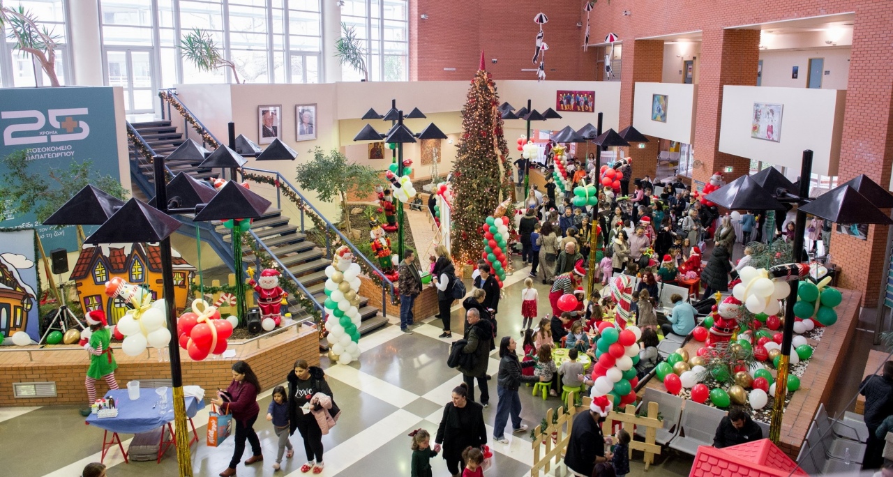 Σε ένα γιορτινό σκηνικό, πλημμυρισμένο με λαμπερά παιδικά χαμόγελα, μετατράπηκε το κεντρικό σαλόνι του Νοσοκομείου Παπαγεωργίου, στη χριστουγεννιάτικη γιορτή που πραγματοποιήθηκε το Σάββατο 14 Δεκεμβρίου 2024.