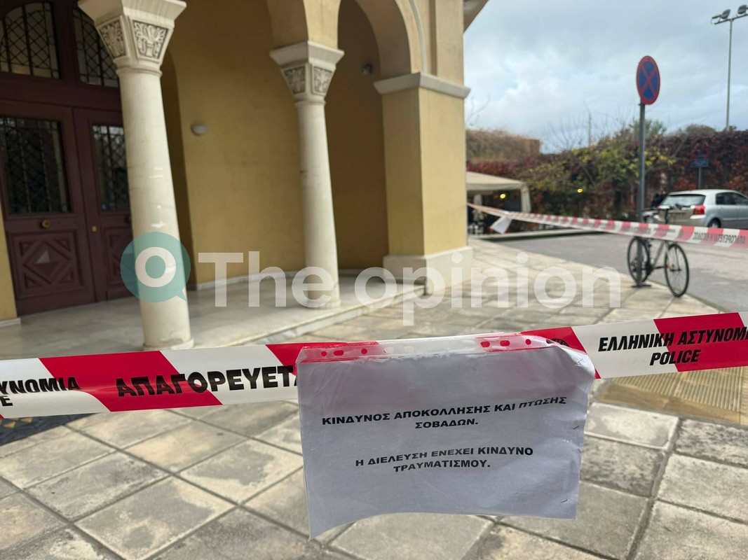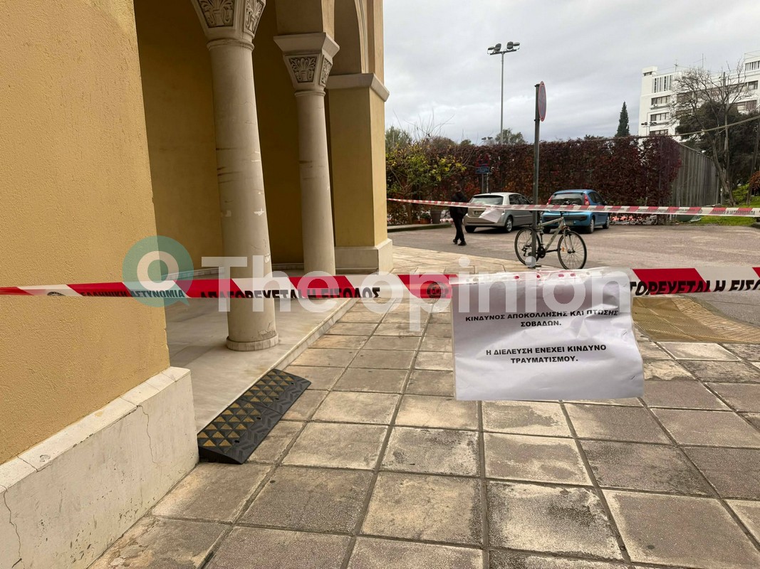 Στο μήνυμα που έχει τοποθετηθεί επάνω στις κορδέλες αναγράφονται τα εξής: «κίνδυνος αποκόλλησης και πτώσης σοβάδων. Η διέλευση ενέχει κίνδυνο τραυματισμού».