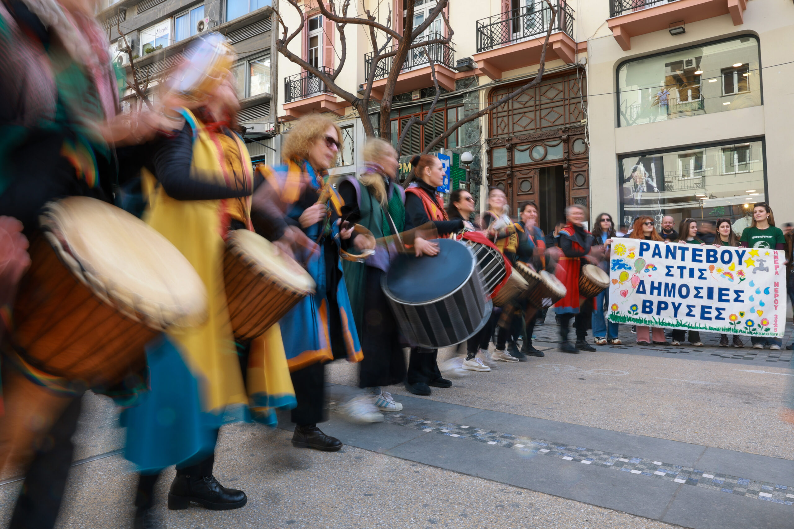 Με μια ειρηνική πορεία προς την Εγνατία και τυμπανοκρουσίες «διαδήλωσαν» σήμερα, Παγκόσμια Ημέρα Νερού, η ΕΥΑΘ, ο Δήμος Θεσσαλονίκης και η Greenpeace, αναδεικνύοντας την προσήλωσή τους στις κοινόχρηστες βρύσες και την πρόσβαση όλων σε καθαρό νερό στους δημόσιους χώρους.