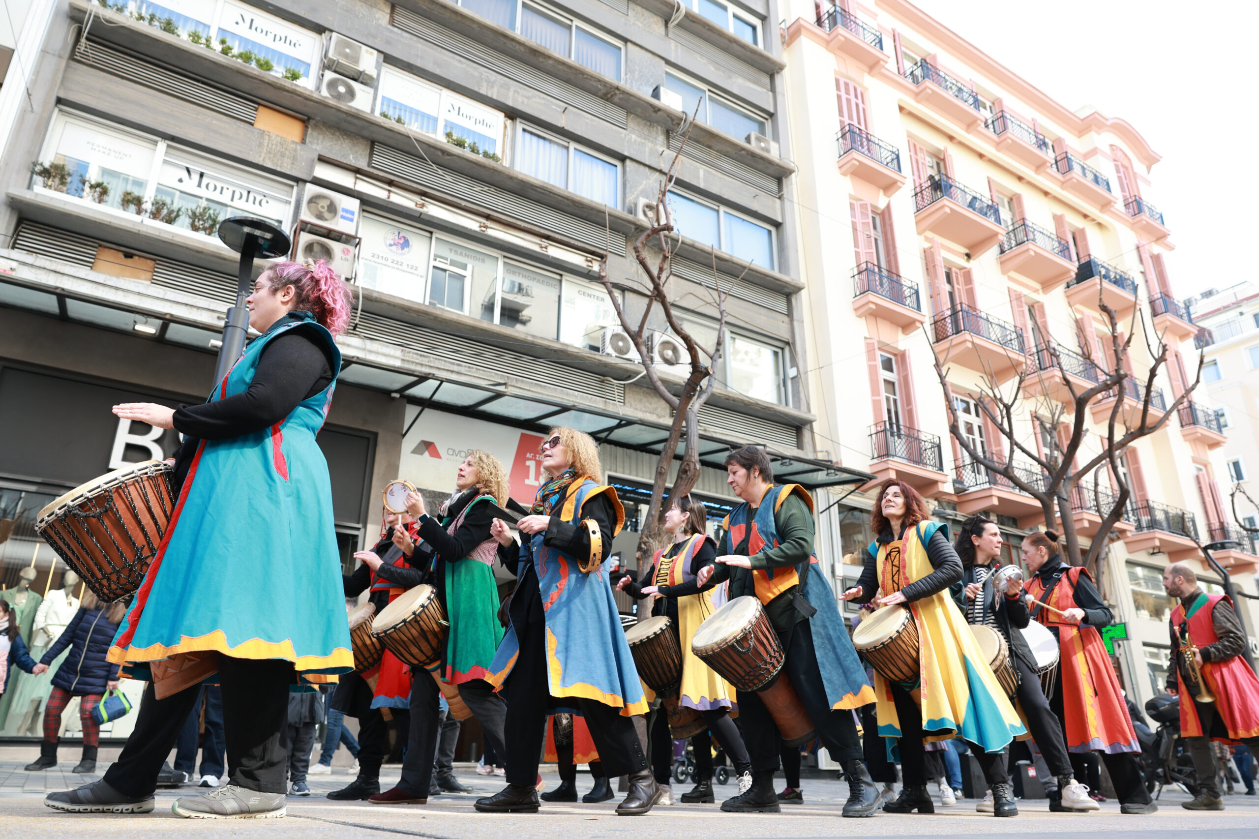 Η μπάντα δρόμου «Κρουστόφωνο» ηγήθηκε μιας μουσικής ειρηνικής «πορείας» προς την Εγνατία, με σύνθημα και πανό «Ραντεβού στις δημόσιες βρύσες!». Το γιορτινό πανό είχαν ζωγραφίσει τα παιδιά που επισκέφτηκαν το Μουσείο Ύδρευσης το τελευταίο διάστημα, στο πλαίσιο των τακτικών εκπαιδευτικών ξεναγήσεων. Οι μουσικές κατέληξαν στο ύψος της Εγνατίας και της… νέας δημόσιας βρύσης, όπου και παρουσιάστηκε ένα κινησιολογικό δρώμενο από την ομάδα της Μ. Βασιλικού με τίτλο «Ροή – Ένα κινησιολογικό ταξίδι στο νερό». Στο σημείο εκείνο ήταν εγκατεστημένο κι ένα σταντ από την ΕΥΑΘ για περισσότερες πληροφορίες και διανομή παγουριών στους περαστικούς, με το ίδιο πάντα μότο: «Πίνουμε νερό από τις δημόσιες βρύσες, προστατεύουμε το περιβάλλον από πλαστικά μιας χρήσης»!