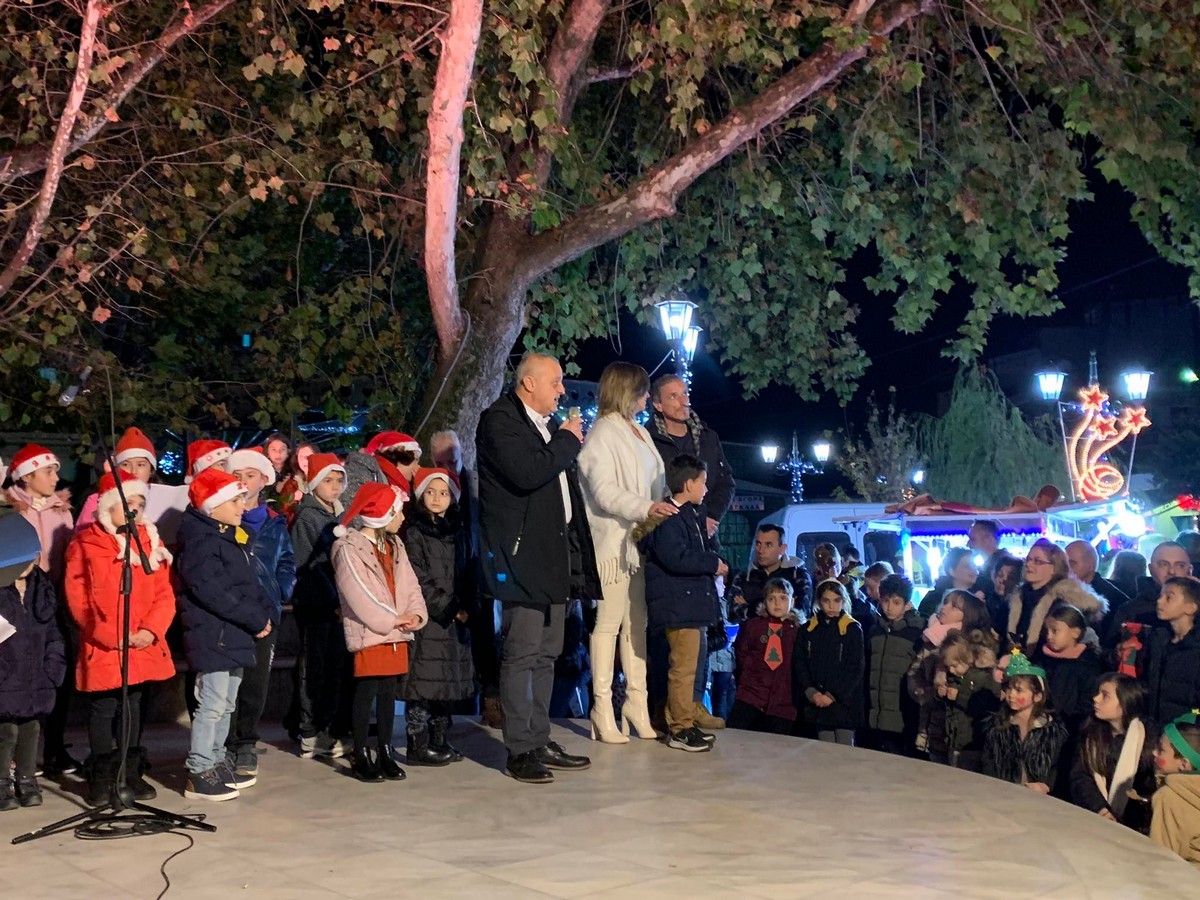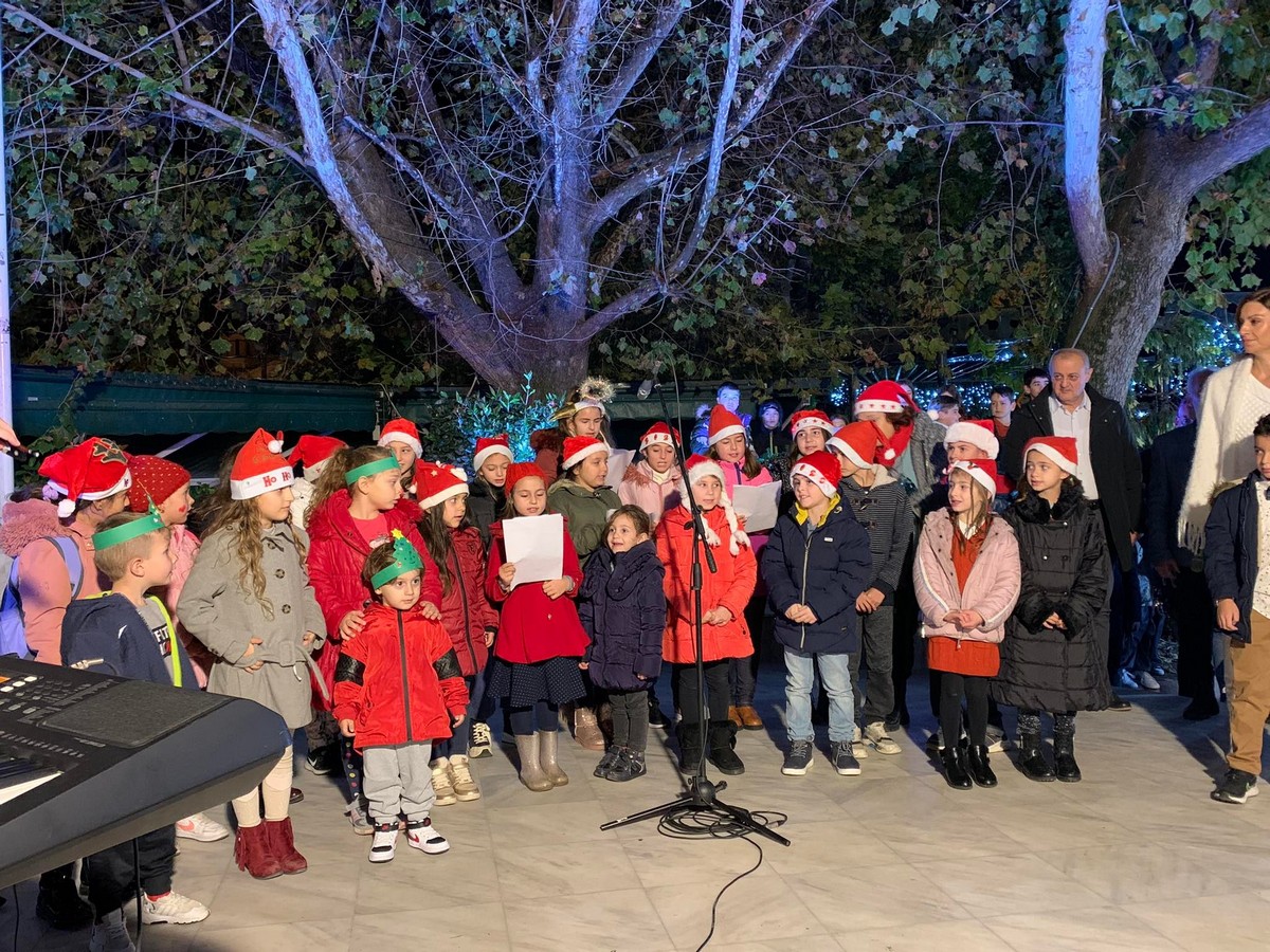 Στη συνέχεια οι παιδικές φωνές της χορωδίας των ΚΔΑΠ αποτέλεσαν την τελευταία πινελιά πριν την αντίστροφη μέτρηση για τη φωταγώγηση του χριστουγεννιάτικου δέντρου.