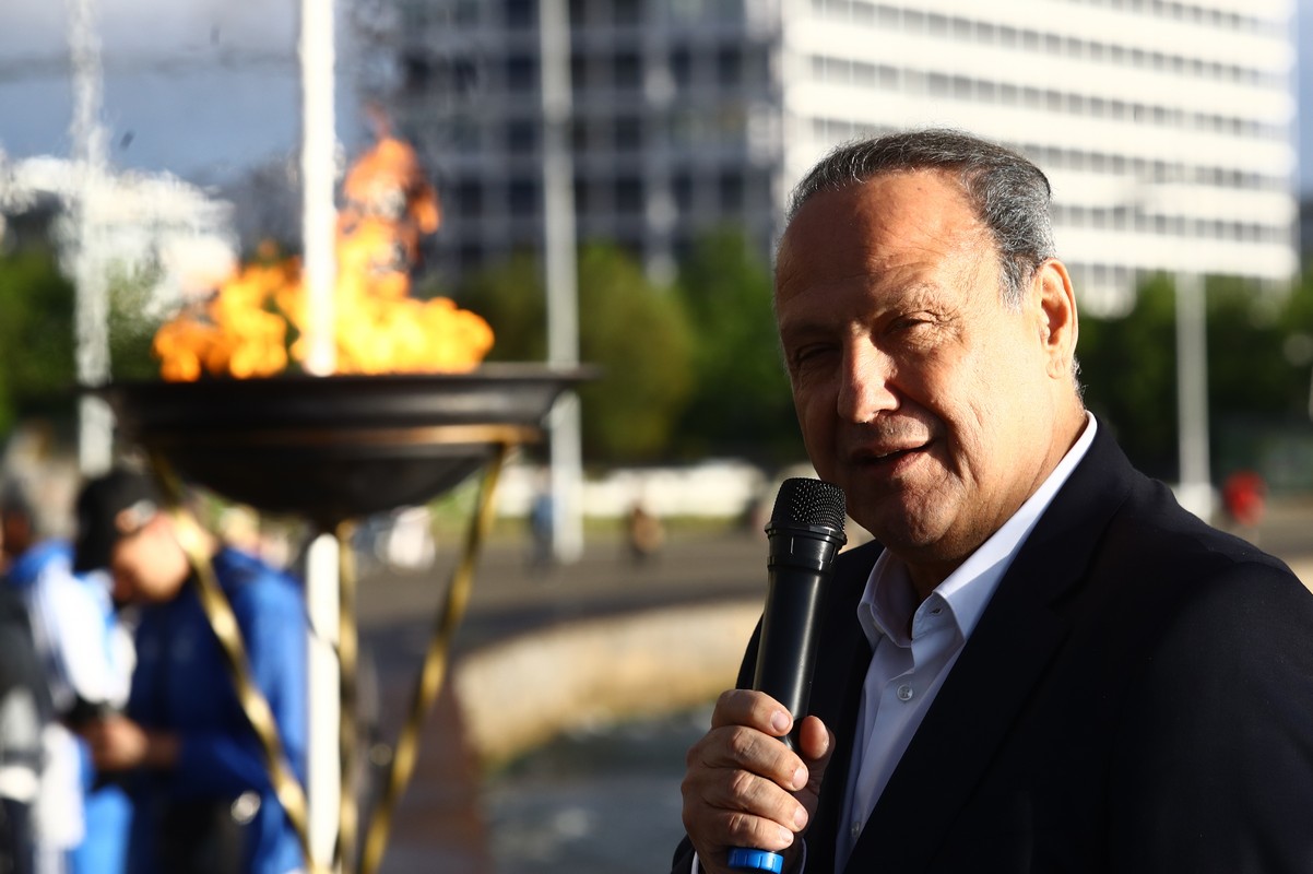Η Ολυμπιονίκης Τασούλα Κελεσίδου, μαζί με το δήμαρχο Θεσσαλονίκης, Στέλιο Αγγελούδη, άναψαν το βωμό, ενώ νωρίτερα πραγματοποιήθηκε η έπαρση των σημαιών των Ολυμπιακών Αγώνων, της Γαλλίας -όπου πρόκειται να πραγματοποιηθούν οι Ολυμπιακοί Αγώνες 2024- και της Ελλάδας.