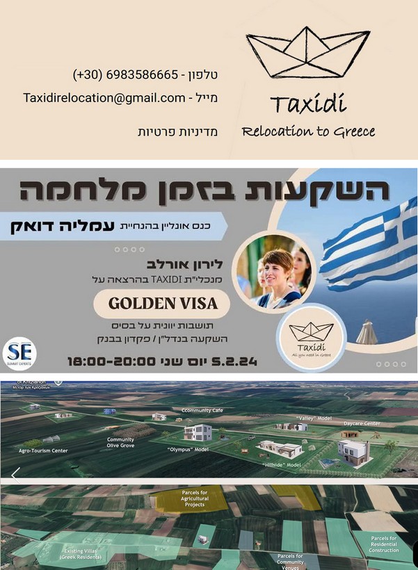 Πρόκειται για μία από τις μεγαλύτερες επενδύσεις, με το project να διαφημίζεται σε ισραηλινά και διεθνή groups με μηνύματα για μία «νέα ζωή» σε ένα «πράσινο χωριό» και τη δημιουργία μίας «διεθνούς κοινότητας» από το 2026 και μετά, ενώ ανάλογες διαφημίσεις υπάρχουν και στο αεροδρόμιο «Ελ. Βενιζέλος» στην Αθήνα!