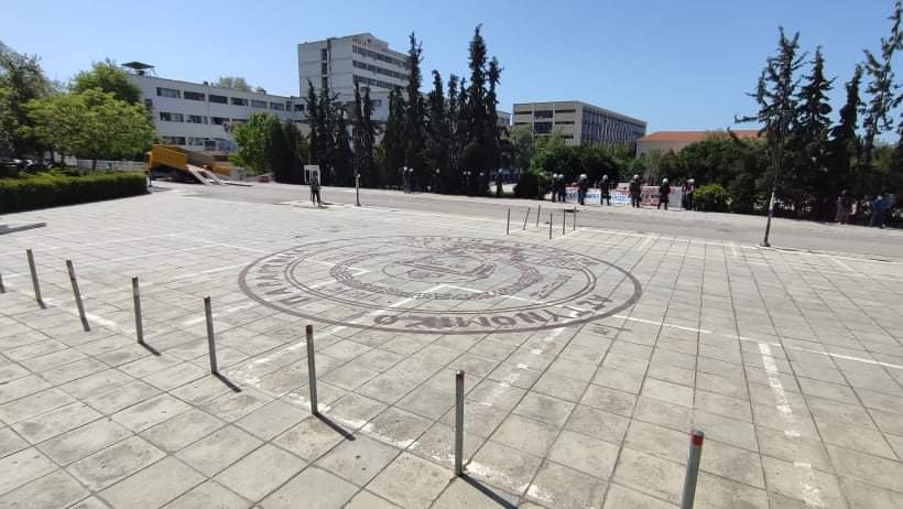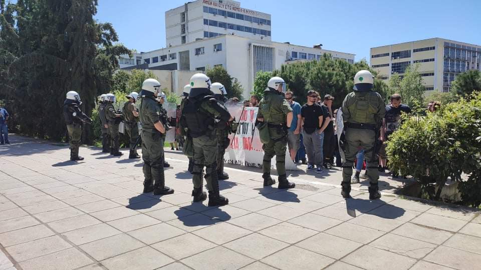 Από το πρωί δυνάμεις των ΜΑΤ βρέθηκαν εντός της πανεπιστημιούπολης και απαγόρευαν την πρόσβαση στον χώρο όπου εκτελούνται οι εργασίες.