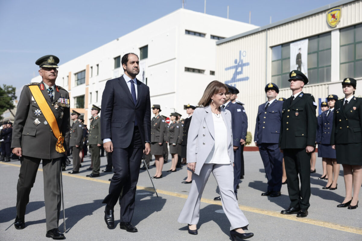 Στην τελετή ορκωμοσίας των νέων αξιωματικών της Στρατιωτικής Σχολής Αξιωματικών Σωμάτων (ΣΣΑΣ) στη Θεσσαλονίκη παρέστη η Πρόεδρος της Δημοκρατίας Κατερίνα Σακελλαροπούλου.