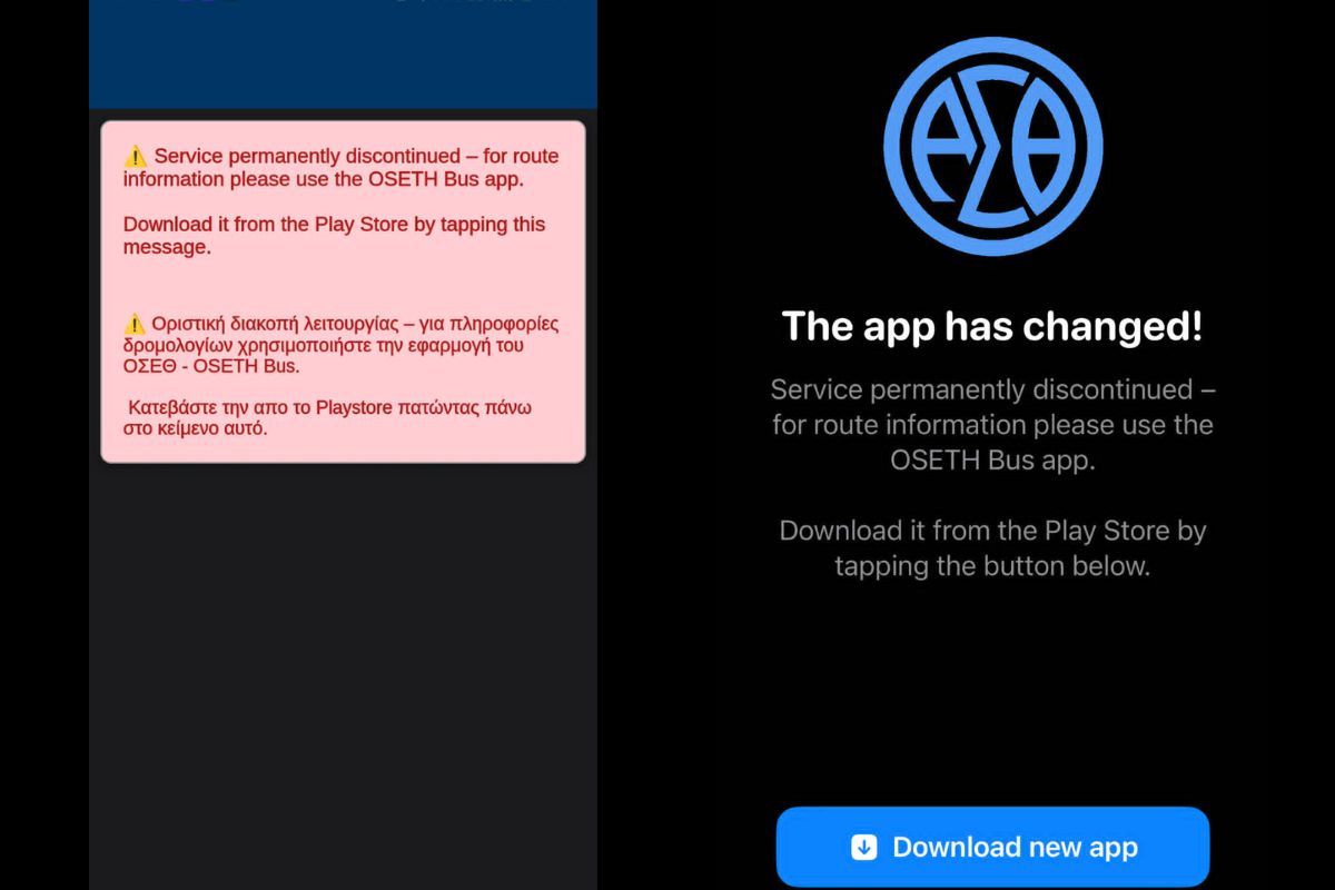 «Η Θεσσαλονίκη αλλάζει ψηφιακή σελίδα στις αστικές της συγκοινωνίες. Με στόχο την παροχή σύγχρονων και ενοποιημένων υπηρεσιών, ο ΟΑΣΘ ενημερώνει το επιβατικό κοινό ότι προχωρά στην οριστική απενεργοποίηση των ψηφιακών εφαρμογών του, έως το τέλος της τρέχουσας εβδομάδας. Συγκεκριμένα, οι υφιστάμενες εφαρμογές «OASTH Bus» και τα εργαλεία τηλεματικής του ιστοτόπου του ΟΑΣΘ αντικαθίστανται από τη νέα εφαρμογή «OSETH Bus».