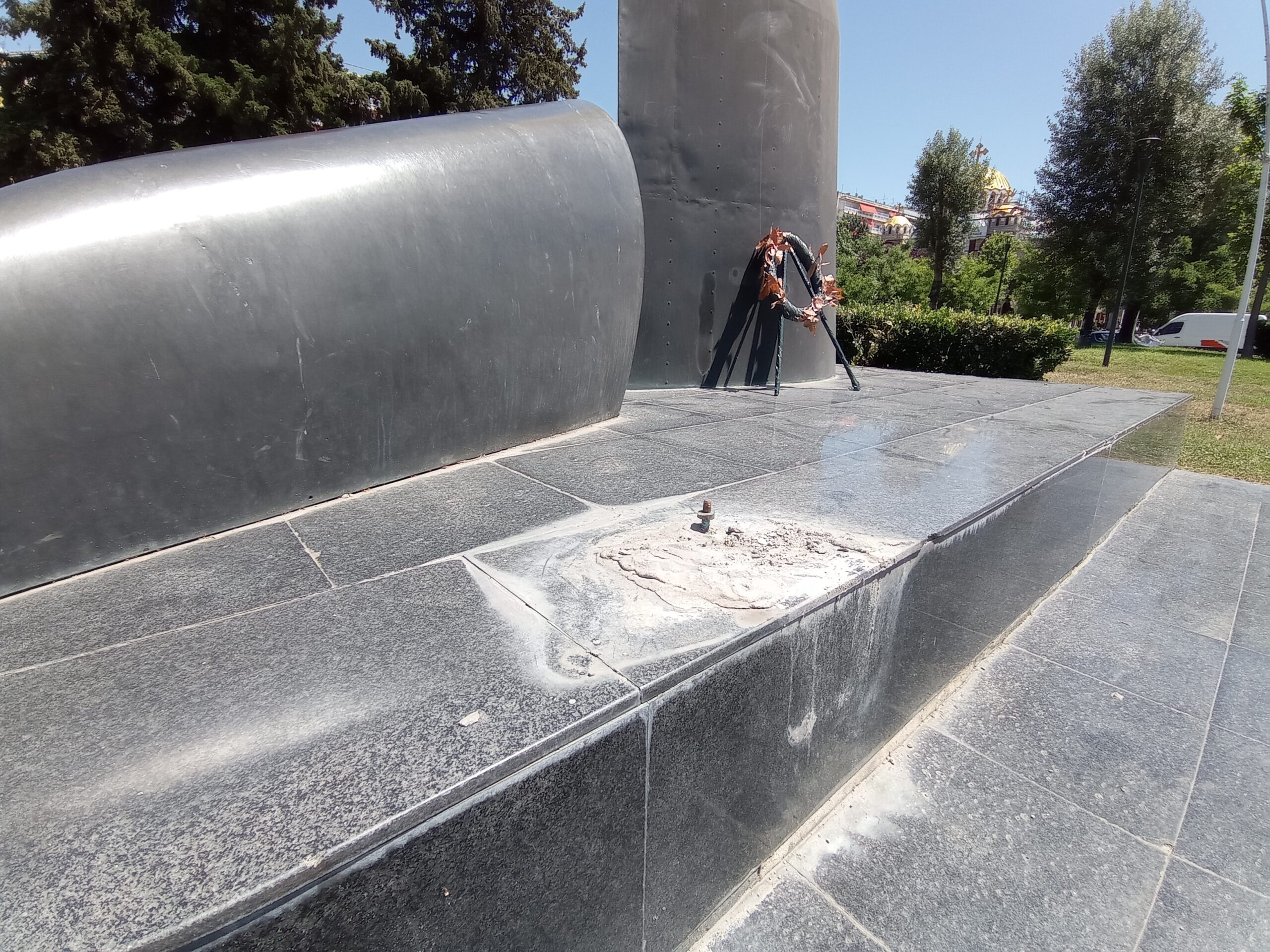 Κι αν οι γνωστοί – άγνωστοι γυρολόγοι εκμεταλλεύτηκαν την ησυχία στο πάρκο της Αρετσούς κατά τις βραδινές ώρες, προκειμένου να αφαιρέσουν την προτομή, προκαλεί πραγματικά απορία πώς κάποιοι άλλοι (εκτός αν είναι οι ίδιοι…) κατάφεραν να αποσπάσουν το κράνος από το Μνημείο Πεσόντων Αεροπόρων, που βρίσκεται επί της παραλιακής Λεωφόρου Μεγάλου Αλεξάνδρου, δίπλα από το Γερμανικό Προξενείο!