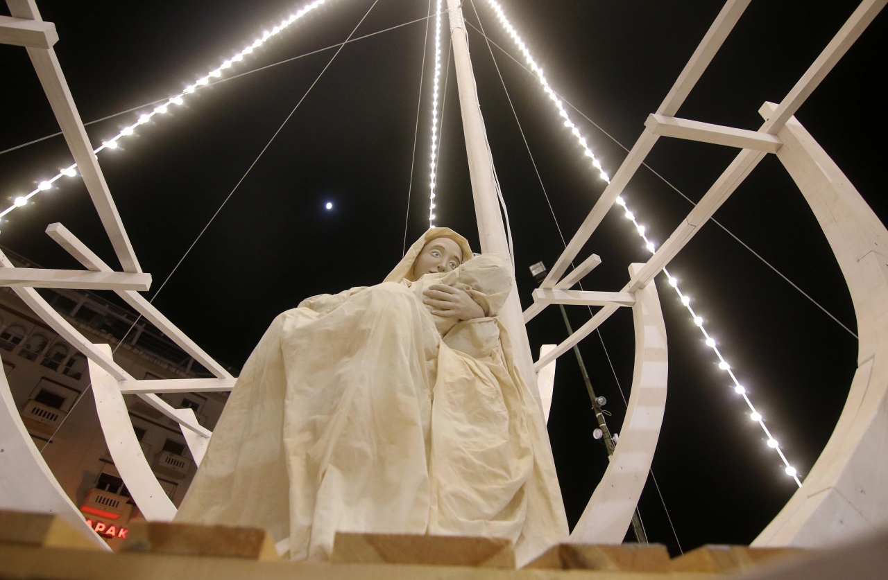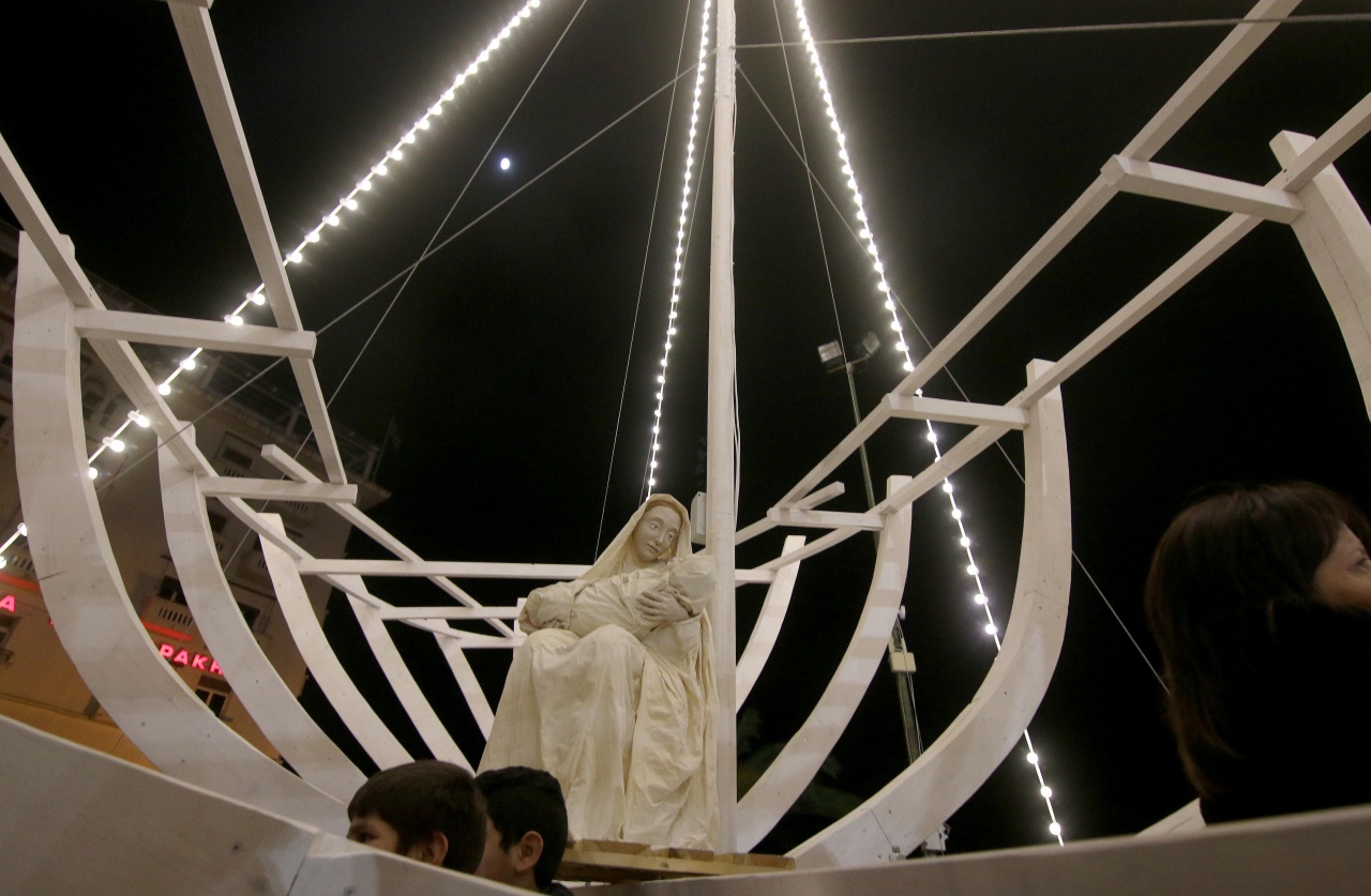 «Η πρόταση που είχα κάνει δεν είχε μονοσήμαντο χαρακτήρα. Μέσα στο σκαρί, σε σημείο εμφανές, είχα τοποθετήσει μια Παναγία με το βρέφος στην αγκαλιά της, που ναι μεν είχε αναφορά στα Χριστούγεννα, είχε όμως παράλληλα και έναν συμβολισμό έντονο, μια “παραπομπή” στην εικόνα μιας προσφυγοπούλας που γεννά ένα παιδί μέσα στα έγκατα ενός πλεούμενου, που την πάει κάπου. Αλλά και το ίδιο το σκαρί είχε διττά κατάλοιπα, δεν ήταν μόνο το καράβι που παραδοσιακά οι Έλληνες στολίζουν τα Χριστούγεννα, αλλά ήταν και ένα καράβι που τελικά κινεί το μυαλό να δημιουργήσει, τον πρόσφυγα να κάνει μια νέα αρχή», τονίζει μιλώντας στο The Opinion o Απόστολος Βέττας.