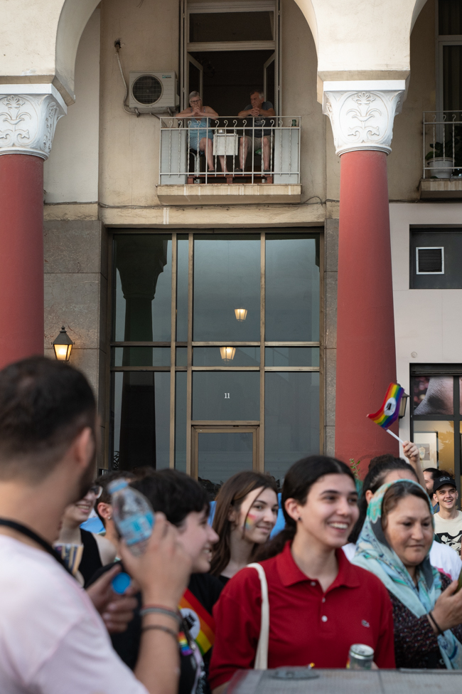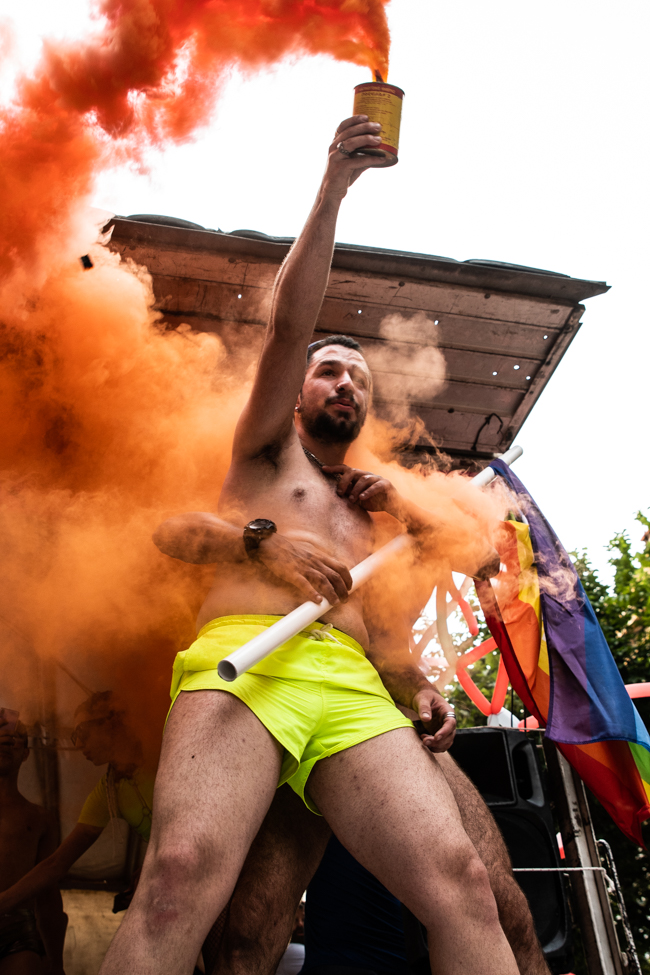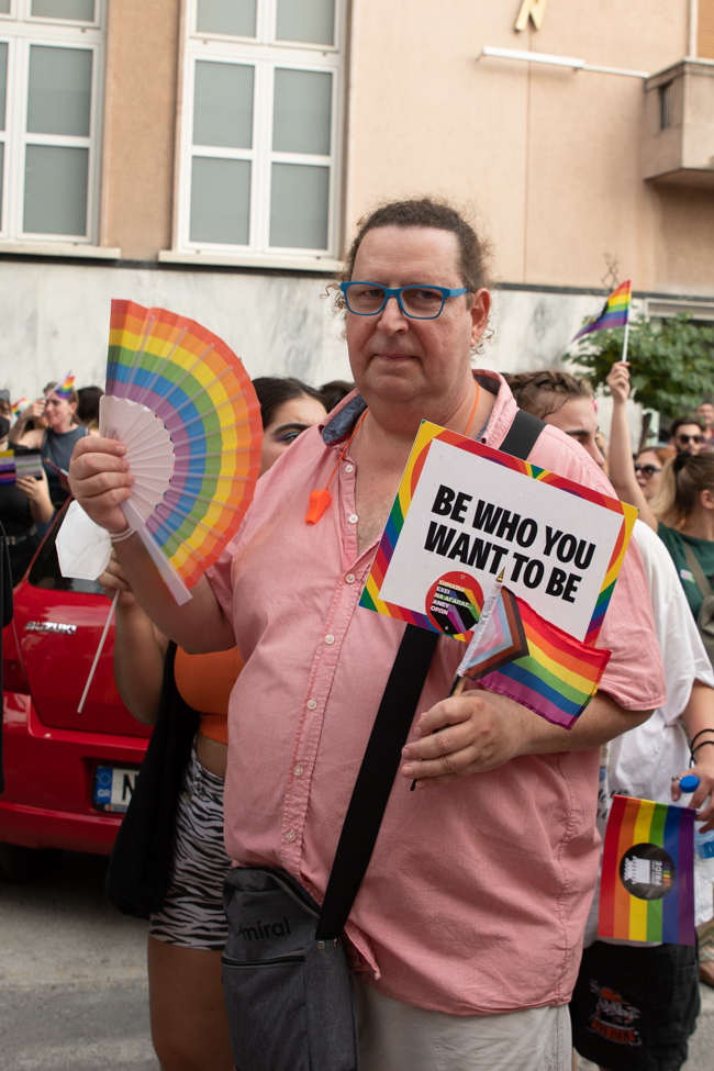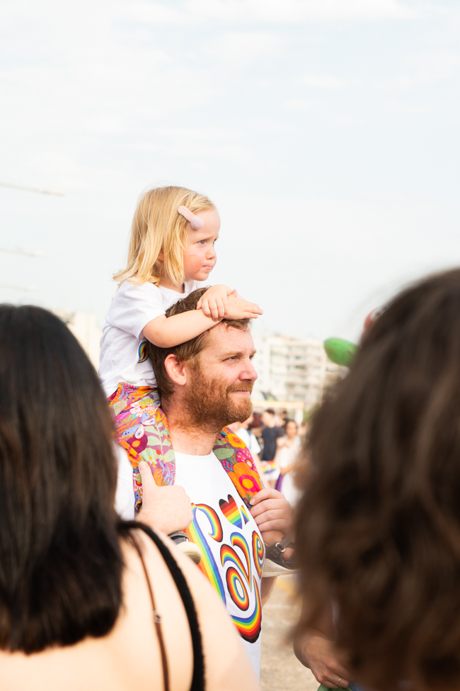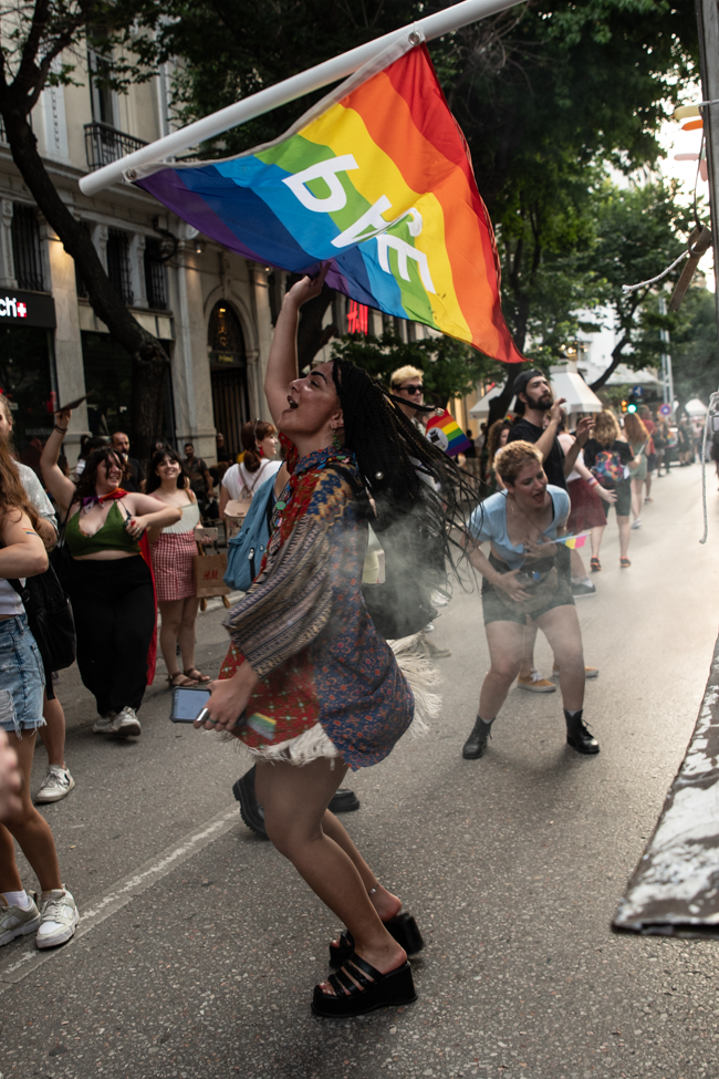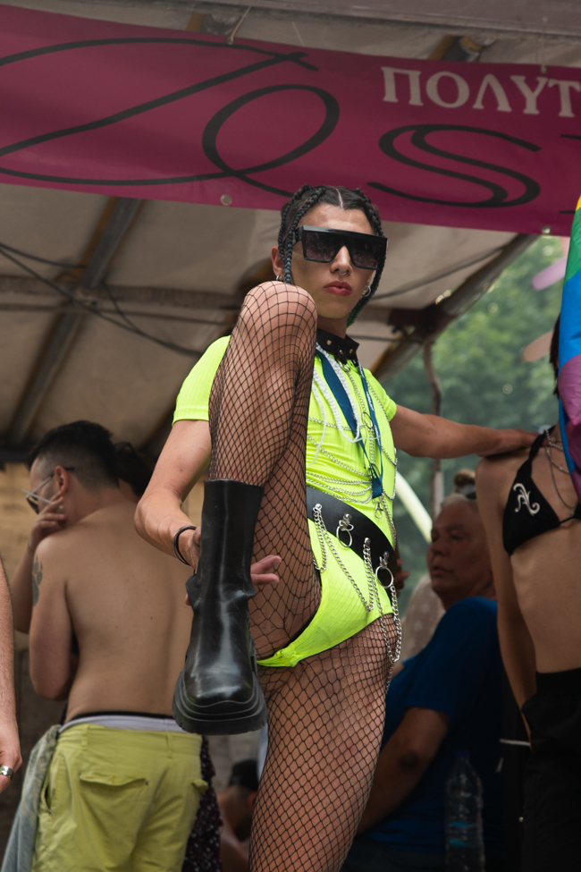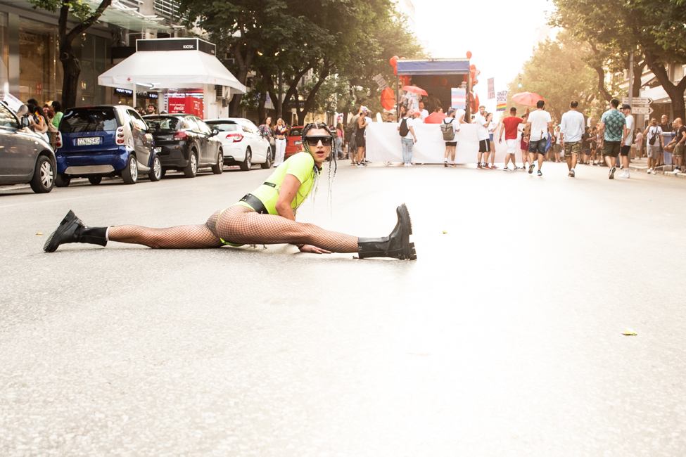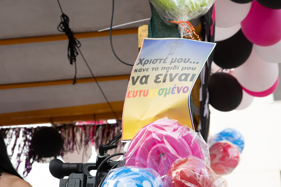 Μα είδα και το φίδι, ήταν εκεί όπως πάντα στημένο ύπουλα στη σκιά του. Το μίσος και η μισανθρωπιά, ο δολοφονικός φόβος ενάντια σε κάθε τι διαφορετικό. Μια μεγάλη παρέα μικρών παιδιών στην κατάληξη της παρέλασης στον Λευκό Πύργο προκαλούσαν κι έβριζαν χυδαία. Έκαψαν κι έφτυσαν τη σημαία του Pride κάνοντας χειρονομίες φωνάζοντας και προκαλώντας τους «πούστηδες» όπως έλεγαν. Ένα μικρό πιτσιρίκι όρμηξε σε μένα επειδή είχα τη φωτογραφική μηχανή και ένα άλλο μου έπιασε το χέρι φωνάζοντας πως παρανομώ – εγώ! επειδή φωτογράφισα τη φωτιά στη σημαία, αναποτελεσματικά και οι δύο.