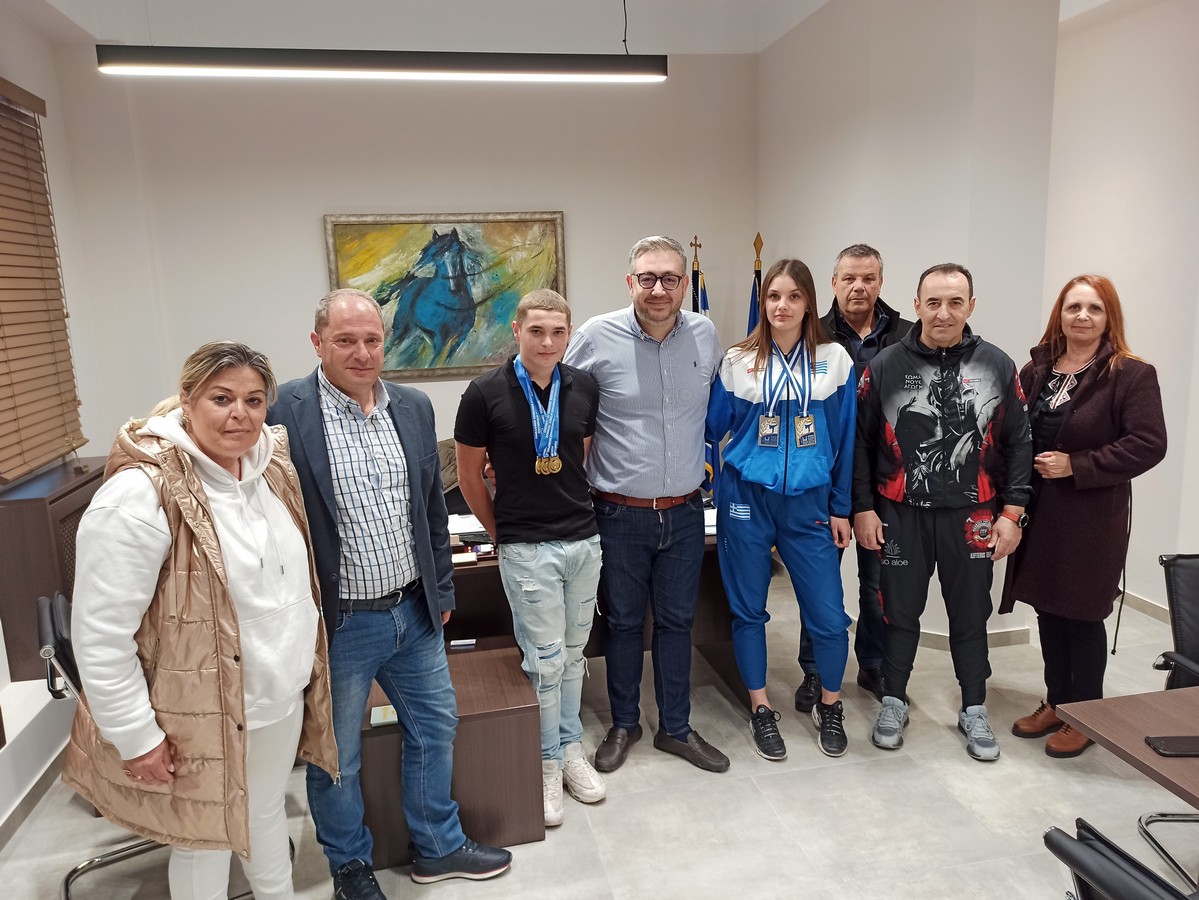 Η Μαριάνθη Κανιώρα πρωταθλήτρια στο Ταε Κβο Ντο και ο Αριστοτέλης Μπουφίδης πρωταθλητής στην τεχνική κολύμβηση στην ομάδα του ΠΑΟΚ δέχτηκαν τα συγχαρητήρια του Δημάρχου, Παντελή Τσακίρη.