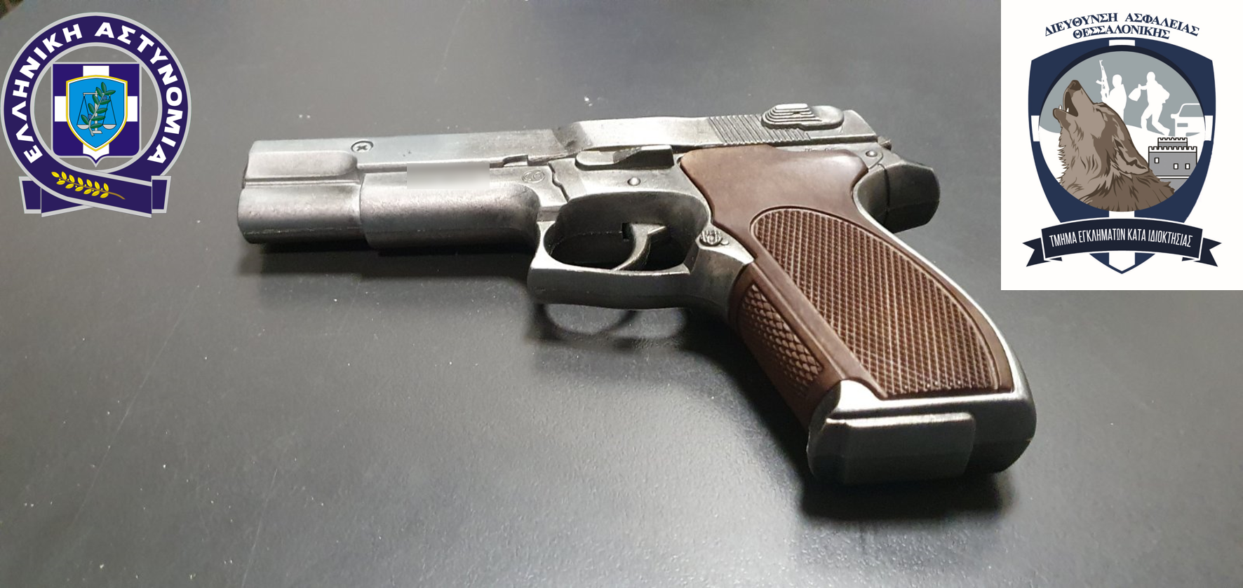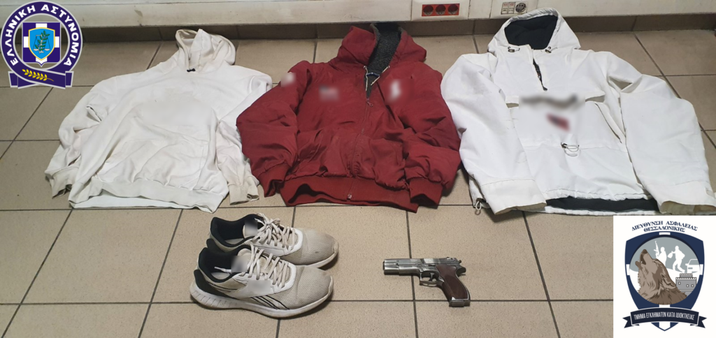 Σε έρευνα του οχήματος βρέθηκε και κατασχέθηκε μία απομίμηση πιστολιού, καθώς επίσης στην οικία του και στην κατοχή του βρέθηκαν ενδύματα που φορούσε κατά την τέλεση των ληστειών.