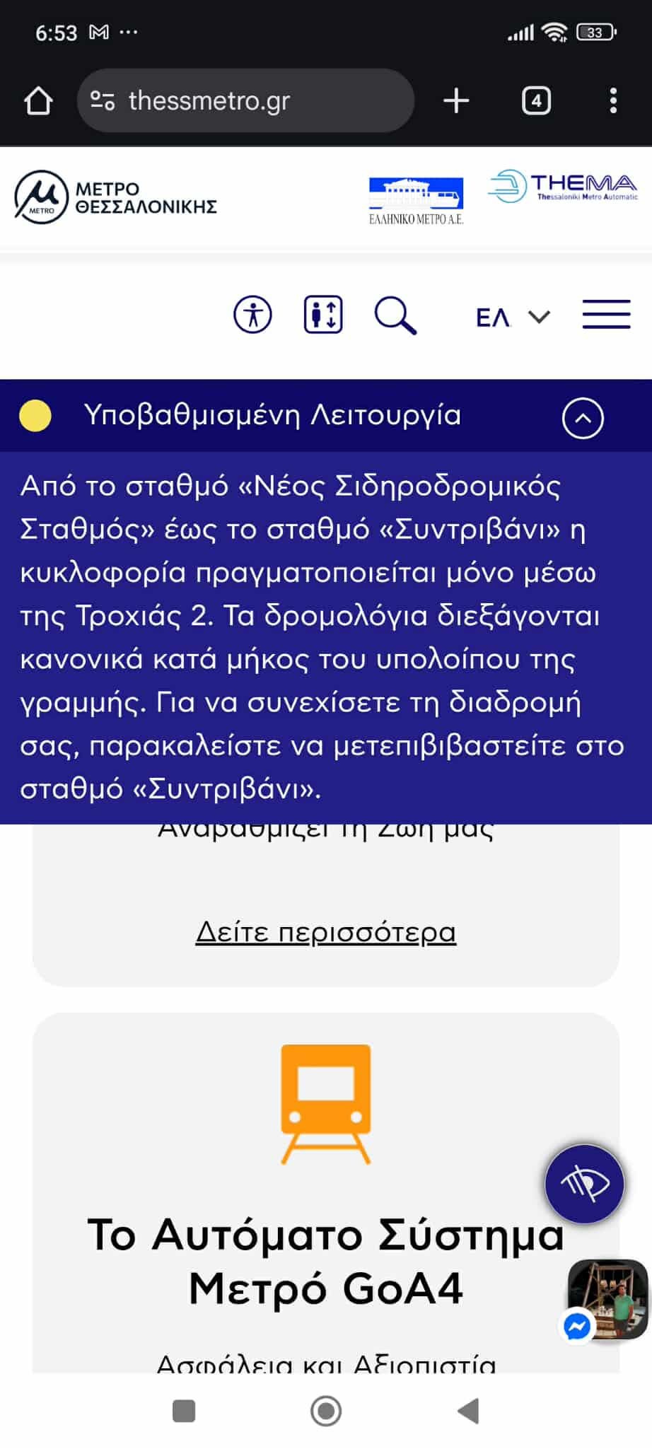 Σύμφωνα με ενημέρωση της THEMA διεξάγεται κανονικά η μετακίνηση των επιβατών από την γραμμή 2.