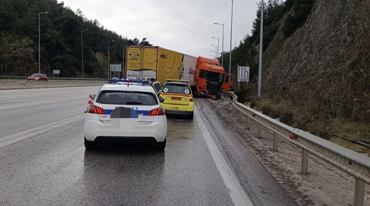 Πιο συγκεκριμένα, μία νταλίκα «δίπλωσε» στην κάθοδο του Δερβενίου, λίγο πριν την έξοδο των Λαγυνών.
