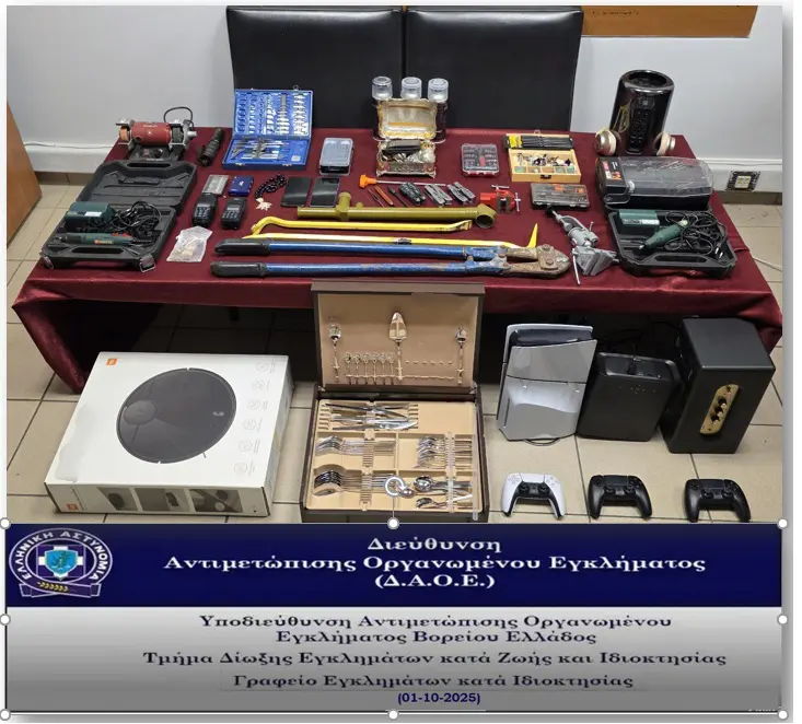 «Από την Υποδιεύθυνση Αντιμετώπισης Οργανωμένου Εγκλήματος Βορείου Ελλάδος εξαρθρώθηκε εγκληματική οργάνωση, τα μέλη της οποίας ενέχονται στη διάπραξη διαρρήξεων σε περιοχές της Θεσσαλονίκης.