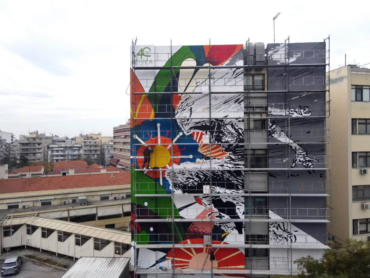 Μια νέα εντυπωσιακή τοιχογραφία δημιούργησε ο Same84 στον τοίχο του Ιπποκράτειου Γενικού Νοσοκομείου Θεσσαλονίκης, αφιερωμένη στα 40 χρόνια του ΚΕΘΕΑ-ΙΘΑΚΗ.