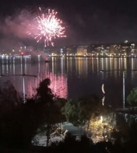 Στο παρακάτω βίντεο (δείτε ΕΔΩ) καταγράφεται η στιγμή που το πλωτό μέσο του δήμου Θεσσαλονίκης ξεκινά την πυροδότηση των πυροτεχνημάτων φωτίζοντας τον νυχτερινό ουρανό της πόλης.