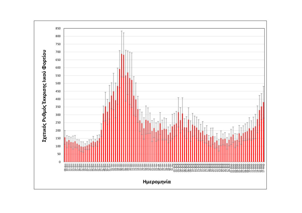 Όπως φαίνεται στα διαγράμματα το ιικό φορτίο των λυμάτων μετράται στο υψηλότερο επίπεδο των τελευταίων εβδομάδων και η ημερήσια τάση του τελευταίου δεκαημέρου είναι έντονα αυξητική και ταυτίζεται με τον ρυθμό ανόδου της Όμικρον 2.