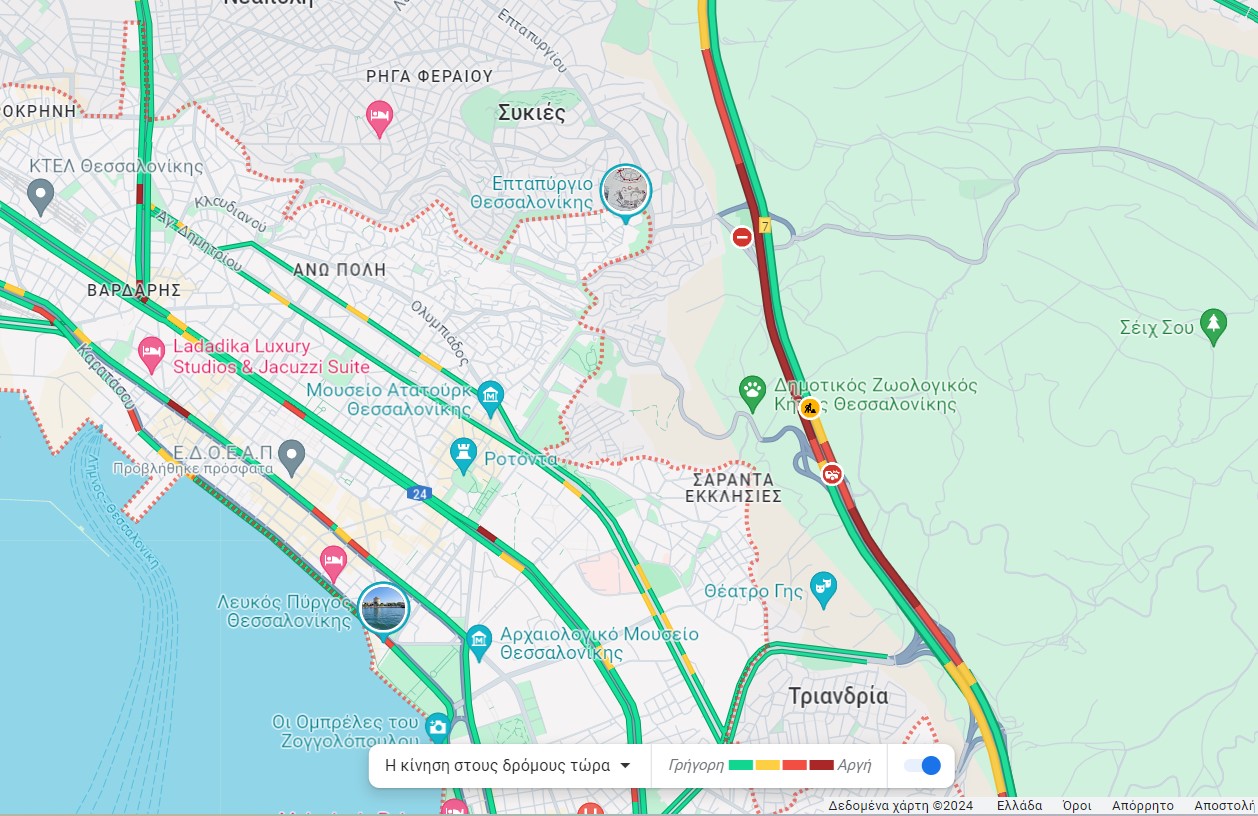Στο σημείο, όπως ήταν αναμενόμενο, έχει δημιουργηθεί μποτιλιάρισμα δεδομένων και των έργων που εκτελούνται και το κλείσιμο μιας λωρίδας.