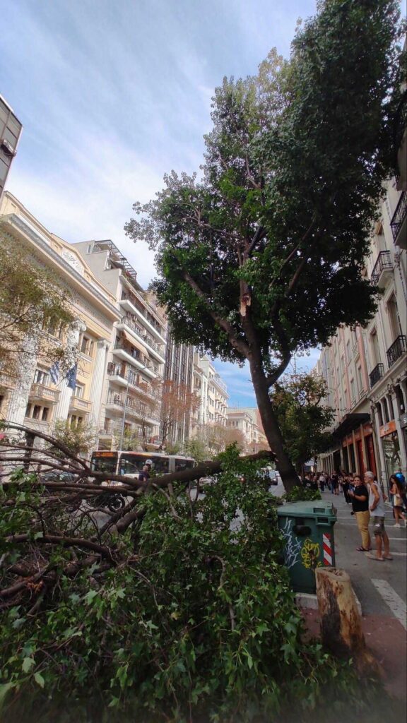 Από… τύχη δεν σημειώθηκε κάποιος τραυματισμός, ενώ στο σημείο σπεύδει και η Πυροσβεστική για την απομάκρυνση του κλαδιού.