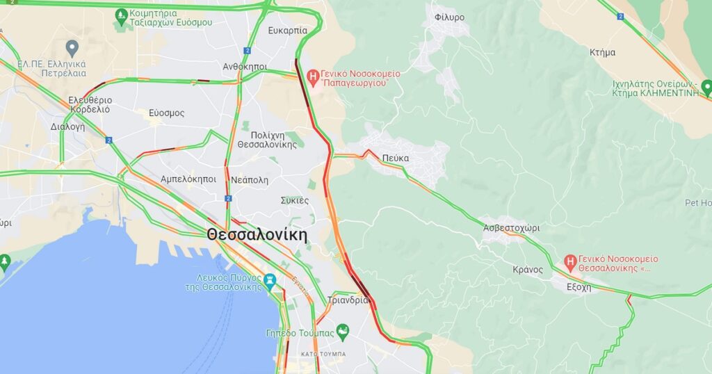 Παράλληλα οι ταχύτητες είναι χαμηλές, αλλά σε καλύτερη κατάσταση, στη λωρίδα, με κατεύθυνση προς τα Δυτικά, με το εντονότερο πρόβλημα να εντοπίζεται προς το παρόν από το ύψος της Τριανδρίας έως και τις Σαράντα Εκκλησιές.