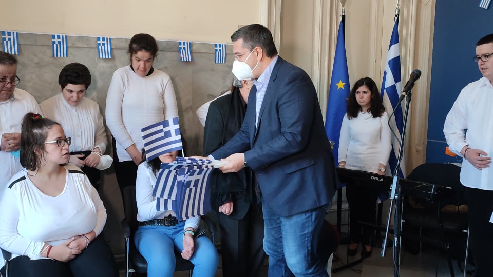 Τραγούδια της εθνικής επετείου της 25ης Μαρτίου τραγούδησαν στην περιφέρεια Κεντρικής Μακεδονίας τα μέλη της Εταιρείας Σπαστικών Βορείου Ελλάδος και του Σωματείου Ειδικής Αγωγής «Η Ζωή».