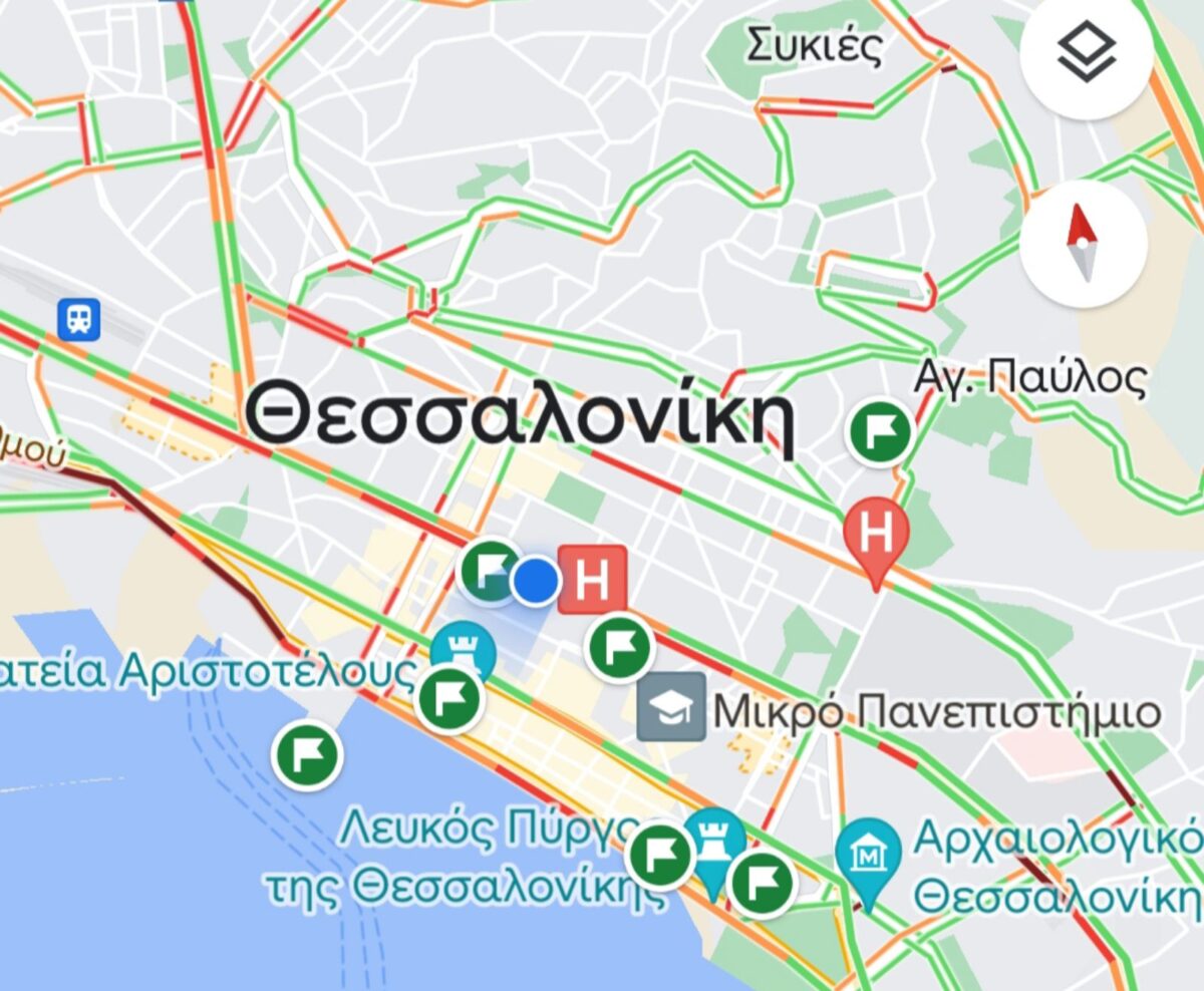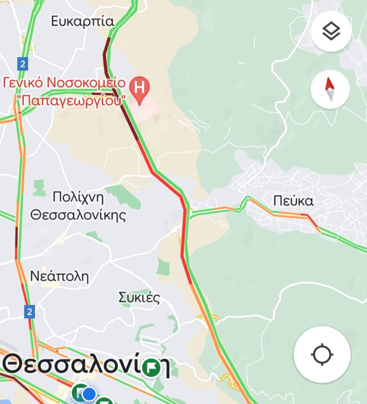 Επιπλέον, και η οδός Εγνατία -και στα δύο ρεύματα- παρουσιάζει μποτιλιάρισμα, με κάποια σημεία να δείχνουν καλύτερη εικόνα.