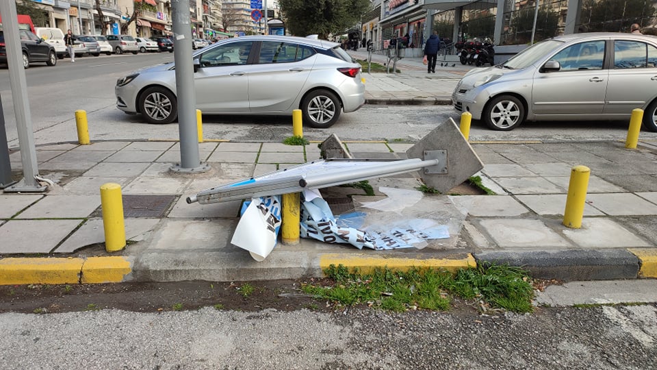 Θεσσαλονίκη: Ο δυνατός αέρας ξήλωσε ακόμα και πινακίδα (φωτό)