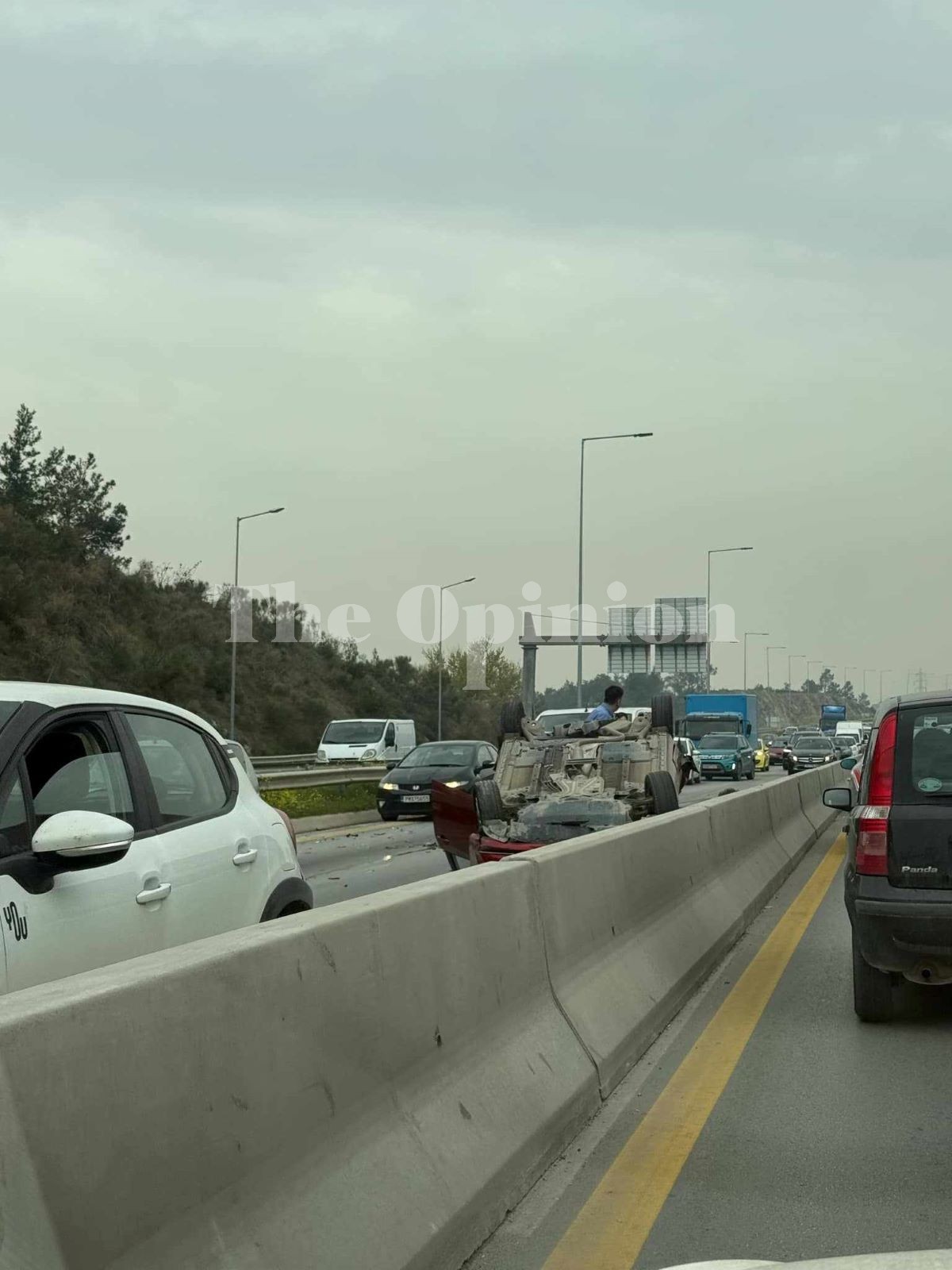Σημειώνεται ότι λόγω του συμβάντος η κίνηση και στα δύο ρεύματα κυκλοφορίας διεξάγεται με χαμηλές ταχύτητες.