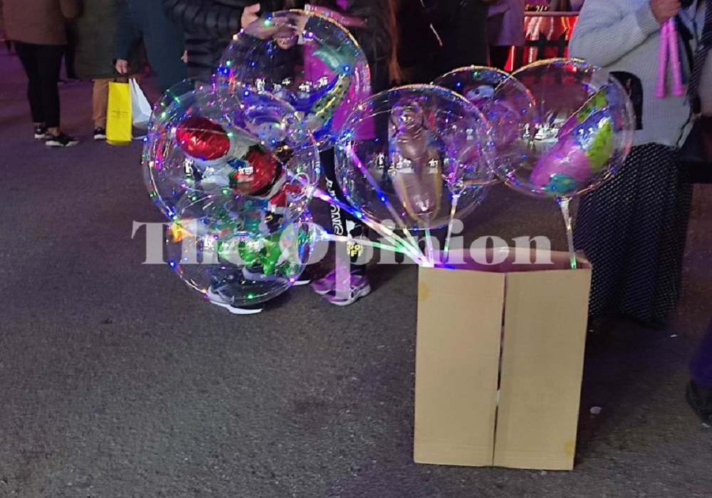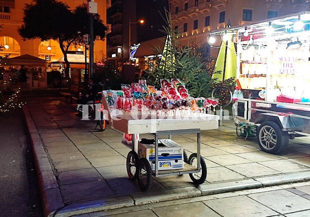 Πάγκοι με διάφορες λιχουδιές, πωλητές μπαλονιών και κλόουν συνθέτουν το χριστουγεννιάτικο σκηνικό στο κέντρο της πόλης.
