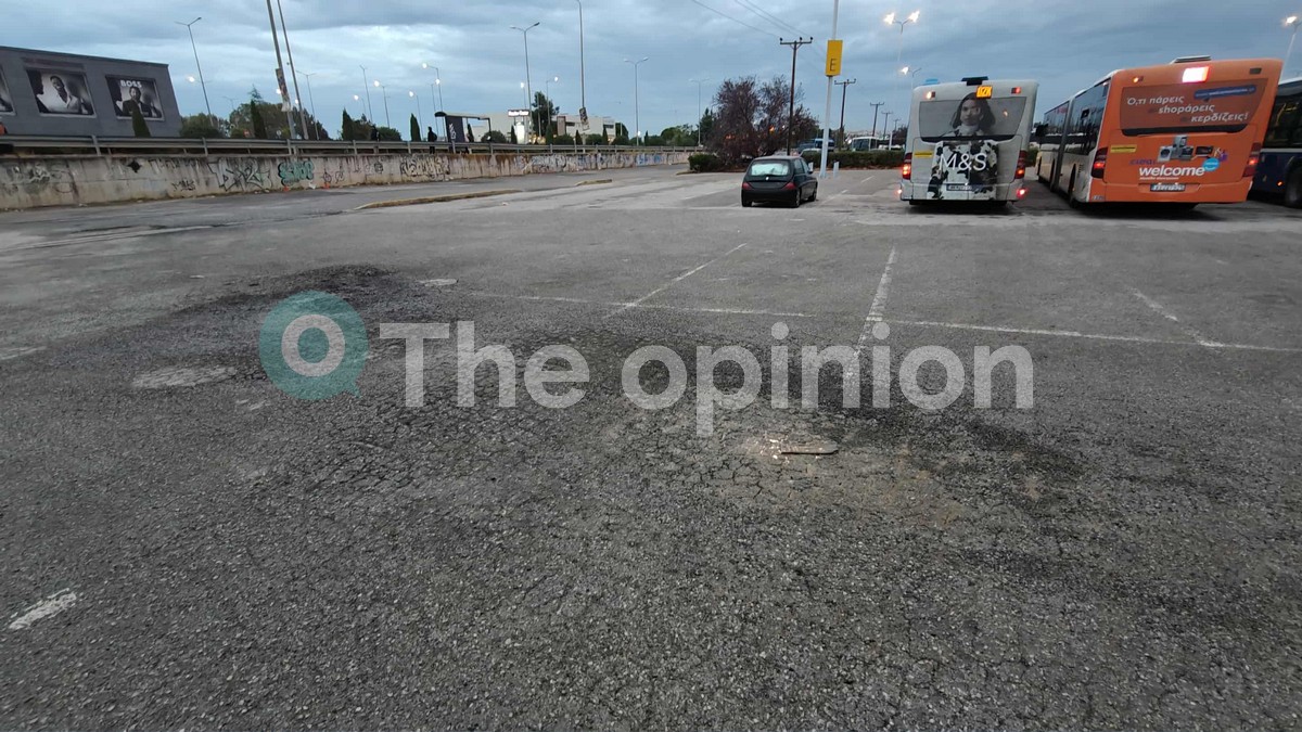Μεγάλες λακκούβες, πρόχειρα μπαλώματα και καθιζήσεις έχουν μετατρέψει τον σταθμό σε «ναρκοπέδιο» για λεωφορεία και αυτοκίνητα, ενώ οι επιβάτες αναγκάζονται να κινούνται ανάμεσα σε λιμνάζοντα νερά και κακοτράχαλα σημεία του δρόμου.