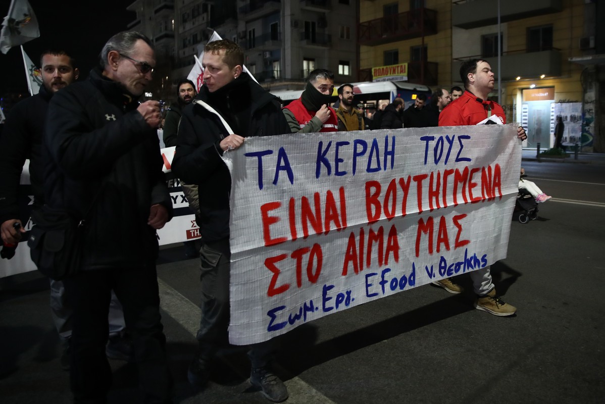 Η πορεία έγινε στο πλαίσιο της σημερινής πανελλαδικής συγκέντρωσης στον κλάδο των τροφίμων και ποτών