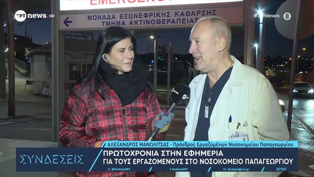 Το νοσοκομείο Παπαγεωργίου στη Θεσσαλονίκη είχε εφημερία, παραμονή Πρωτοχρονιάς, και ο πρόεδρος του συλλόγου εργαζομένων του νοσοκομείου, Αλέξανδρος Μανωλίτσας μίλησε στην εκπομπή «Συνδέσεις» του ΕΡΤNews και τη Λία Χριστάρα για το πως είναι να παραμένει κανείς στο καθήκον, τέτοιες μέρες.