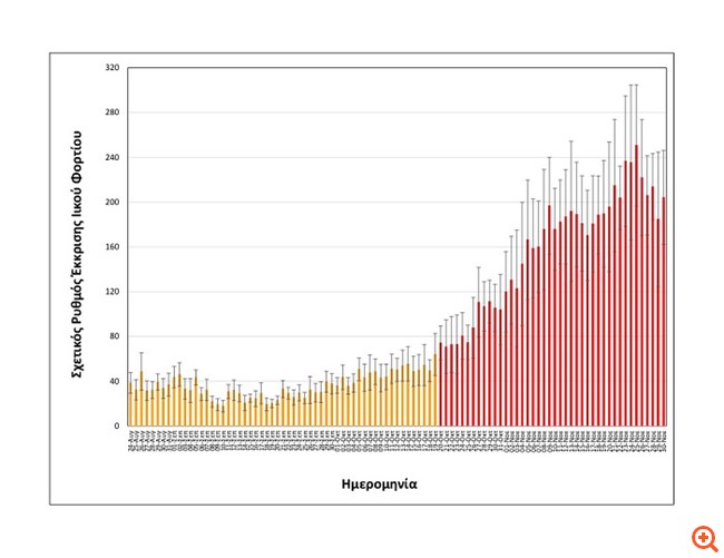 Όπως φαίνεται στα διαγράμματα που παρουσιάζει το ΑΠΕ-ΜΠΕ, το ιικό φορτίο των λυμάτων μετρήθηκε στις 25 Νοεμβρίου στην υψηλότερη τιμή από αρχή της πανδημίας και τις επόμενες μέρες σε ελαφρώς χαμηλότερο επίπεδο.