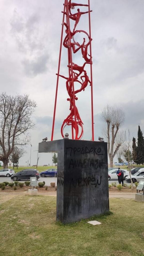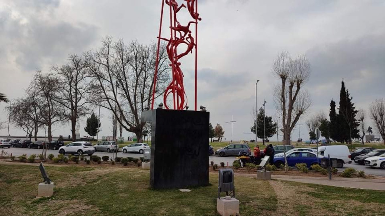 Θεσσαλονίκη: Βανδάλισαν ξανά το γλυπτό «Meteoron» (φωτό – video)