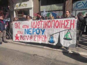 Οι εργαζόμενοι διαμαρτύρονται για την ιδιωτικοποίηση του νερού.