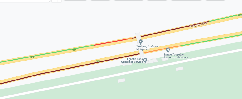 Το μποτιλιάρισμα παρατηρείται και προς τις δύο κατευθύνσεις. Οι ταχύτητες είναι πολύ χαμηλές με τα αυτοκίνητα να είναι έως και σταματημένα.