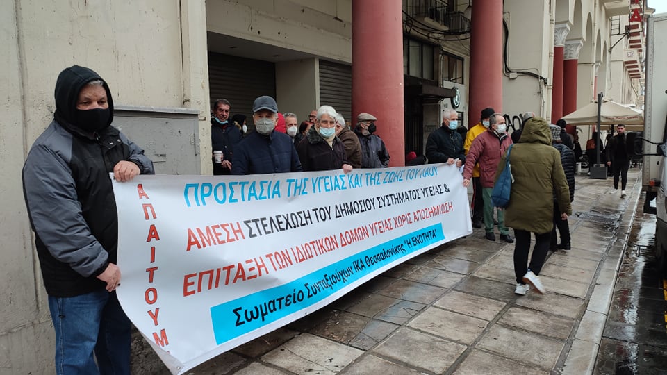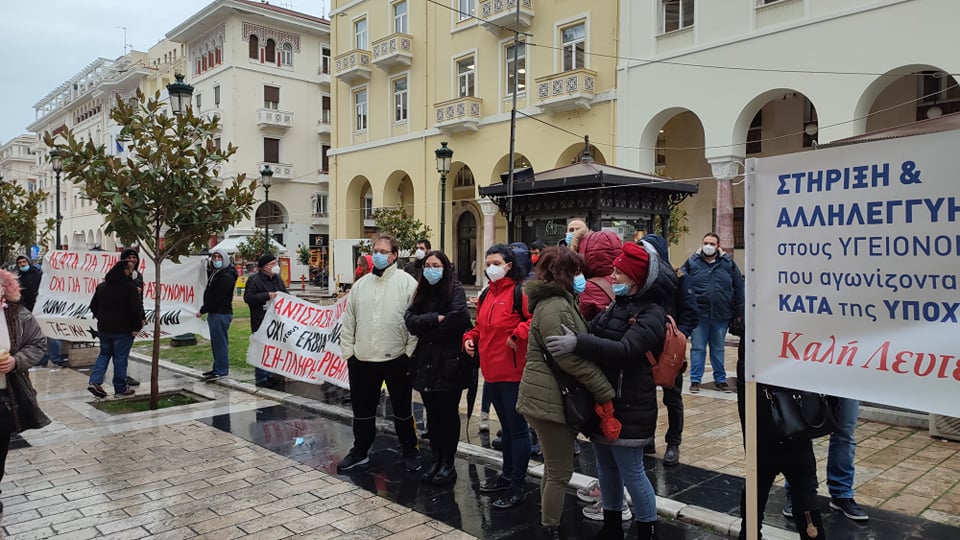 Συγκέντρωση διαμαρτυρίας πραγματοποιούν αυτή την ώρα μέλη της Ένωσης Νοσοκομειακών Ιατρών Θεσσαλονίκης στην Αριστοτέλους, στο πλαίσιο της πανελλαδικής απεργίας υγειονομικών.