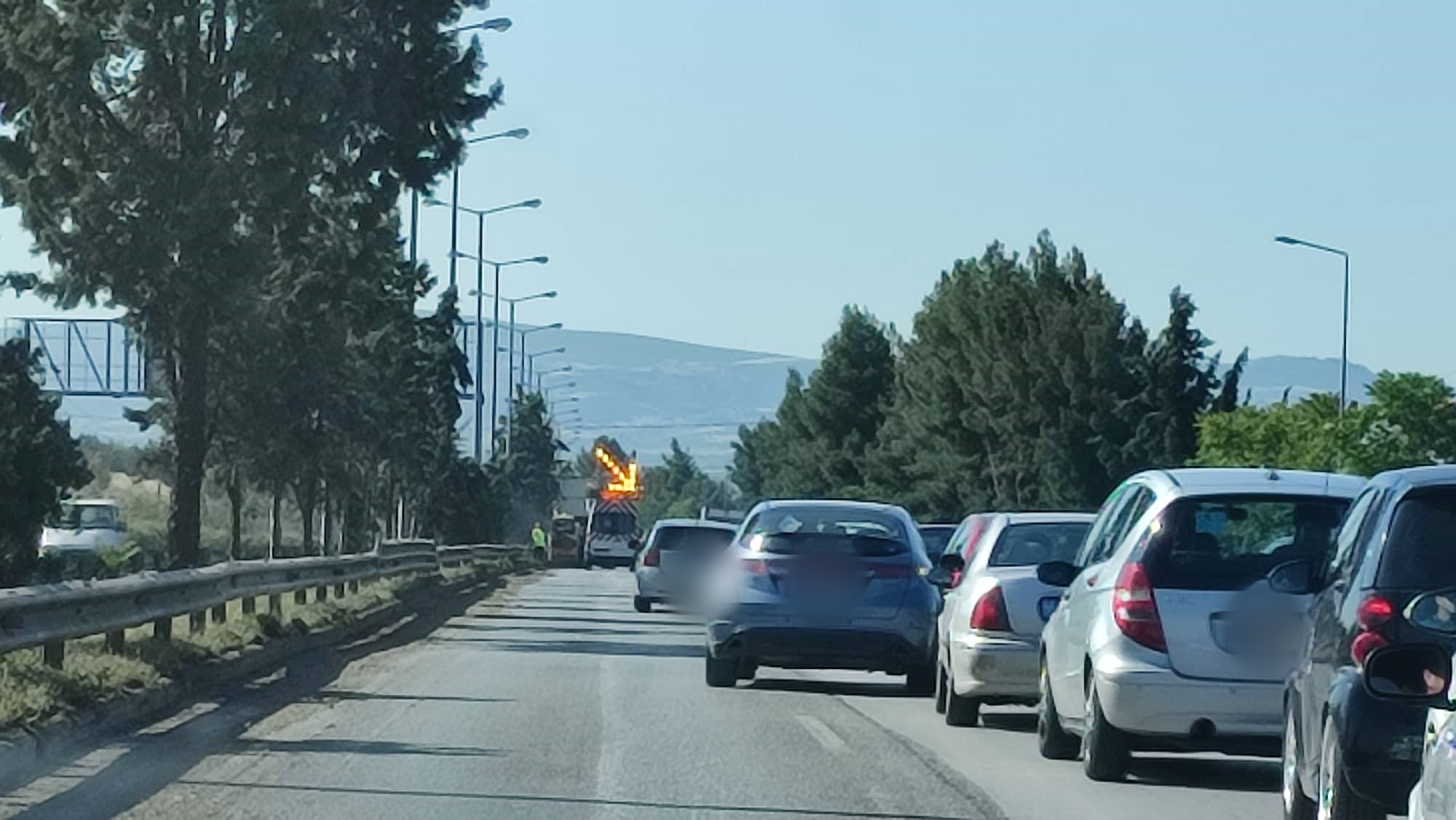 Μποτιλιάρισμα στη Μουδανιών λόγω εργασιών της ΠΚΜ (φωτο)