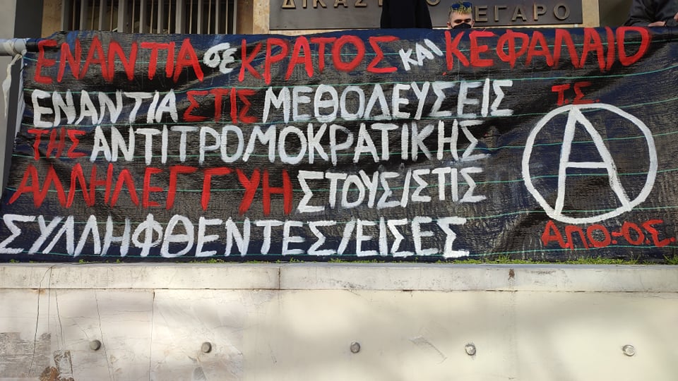 Σε εξέλιξη βρίσκεται συγκέντρωση αλληλεγγύης έξω από τα δικαστήρια της Θεσσαλονίκης, για τους συλληφθέντες της επίθεσης με γκαζάκια στο Ίδρυμα Εθνικού και Θρησκευτικού Προβληματισμού, στην Άνω Πόλη.