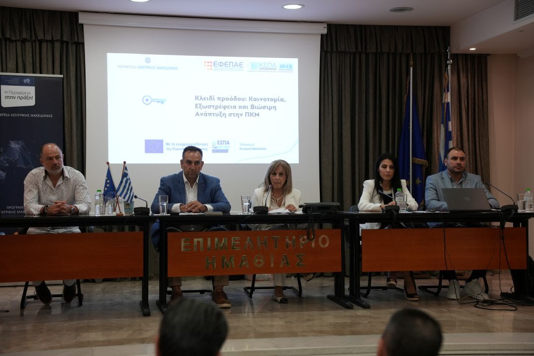 Στην Ημαθία παρουσίασε σήμερα τις δυο νέες δράσεις ενίσχυσης της επιχειρηματικότητας, που χρηματοδοτούνται από το ΕΣΠΑ της Περιφέρειας Κεντρικής Μακεδονίας, η Περιφερειάρχης Αθηνά Αηδονά.