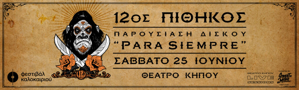 Ο 12ος Πίθηκος παρουσιάζει το νέο του δίσκο “Para Siempre” στη Θεσσαλονίκη. Αναγνωρισμένος ως ένας από τους πιο παραγωγικούς και πρωτοπόρους καλλιτέχνες του ελληνικού hip-hop, ένας ειλικρινής εκφραστής των ανησυχιών μιας γενιάς που ακόμα παλεύει ώστε να μην χαρακτηριστεί “χαμένη” και μιας άλλης, νεότερης, που δυσκολεύεται να δει το μέλλον της.