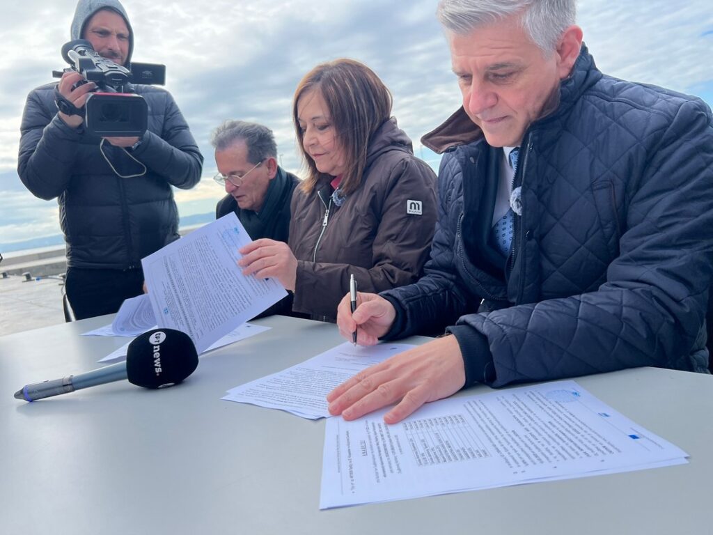 «Πράσινο φως» για την ανάπλαση και ανάδειξη της χερσαίας ζώνης του Αλιευτικού Καταφυγίου Νέας Κρήνης, «άναψαν» σήμερα ο Αντιπεριφερειάρχης Θεσσαλονίκης, Κώστας Γιουτίκας και η Δήμαρχος Καλαμαριάς, Χρύσα Αράπογλου υπογράφοντας τη σύμβαση του έργου, με τον Πρόεδρο και Διευθύνοντα Σύμβουλο της αναδόχου εταιρείας ΤΕΚΑΛ Α.Ε., Παναγιώτη Ψαλτάκο, παρουσία του Αντιπεριφερειάρχη Υποδομών και Δικτύων, Πάρι Μπίλλια.